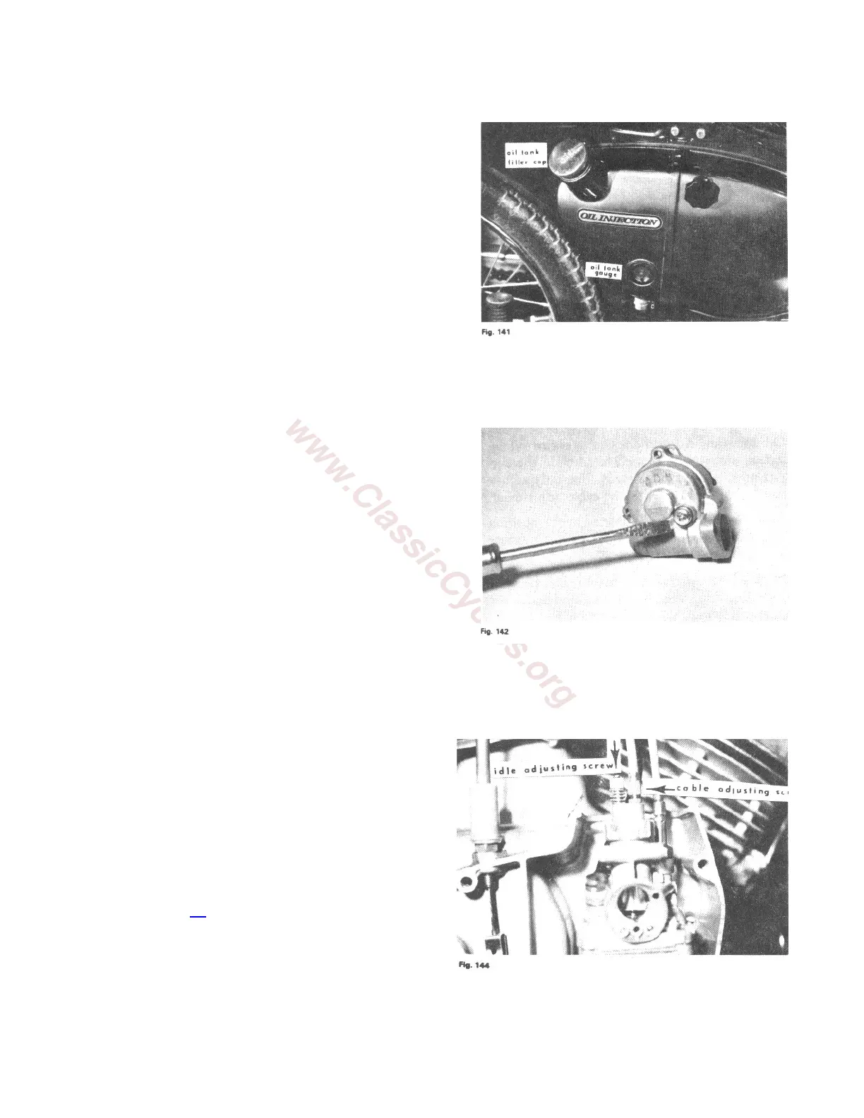 on the pump from the stop pin. Adjustment is made by the cable adjuster located in the cable by the