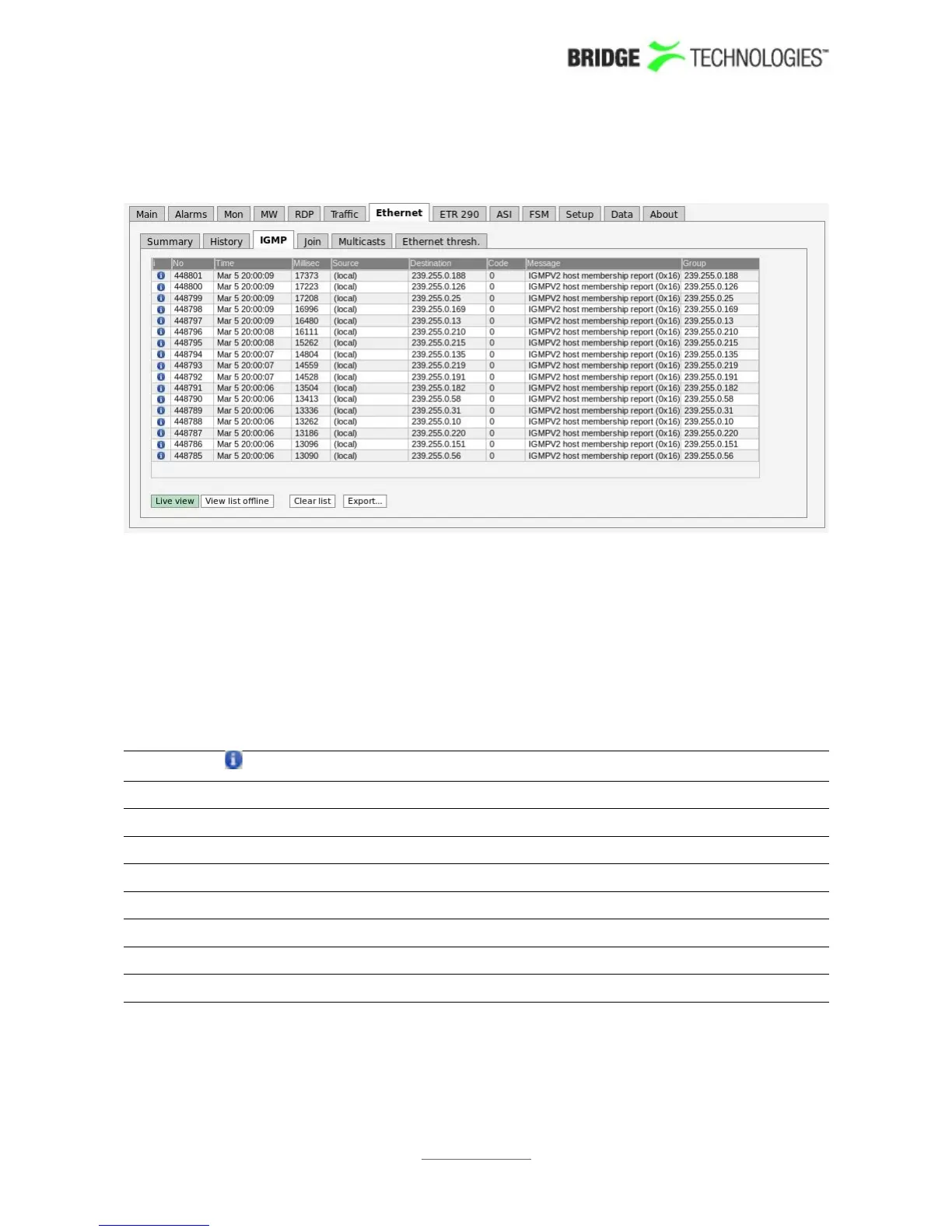 The live IGMP page can be paused by clicking the View list offline button. The IGMP
