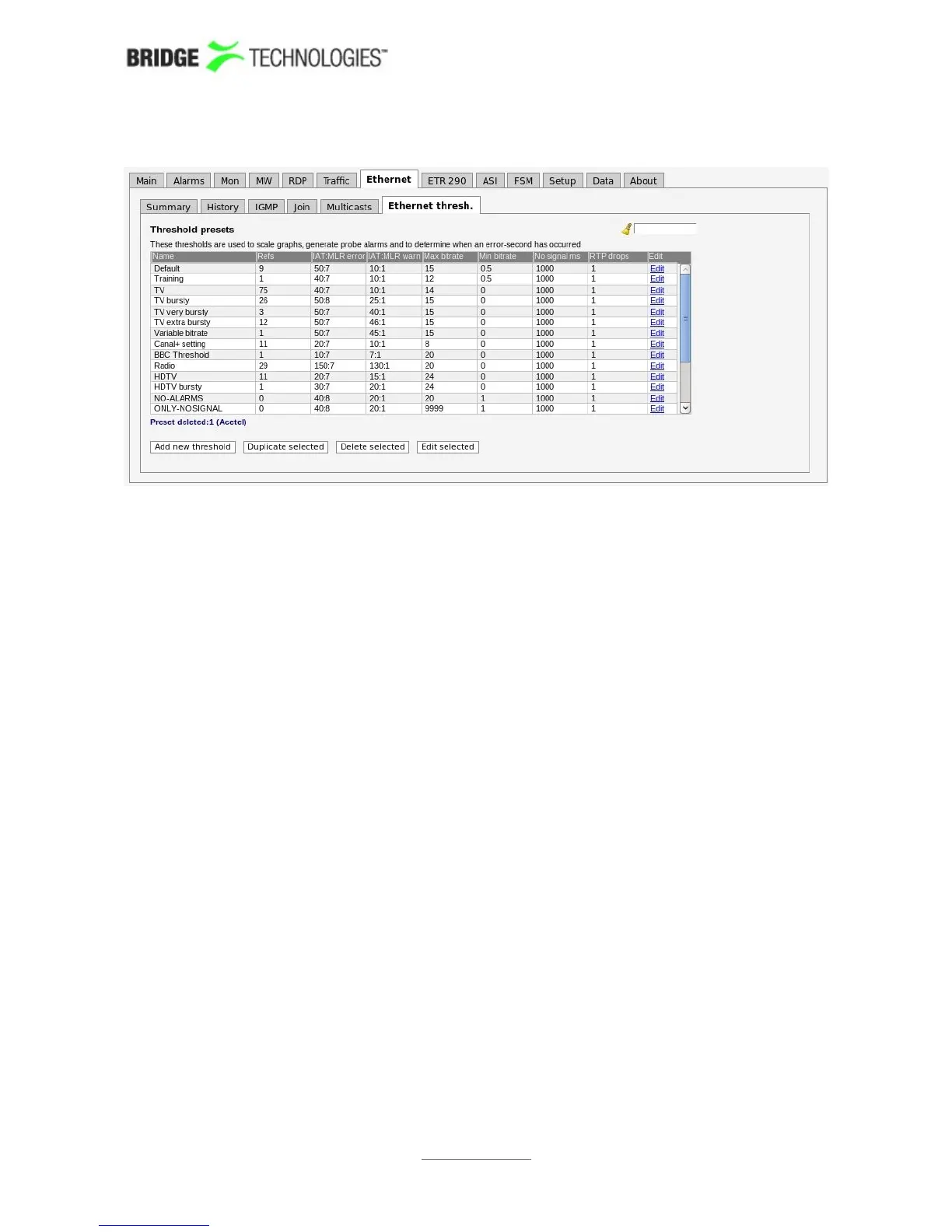 threshold levels are exceeded for a parameter, an alarm will be raised. Ethernet