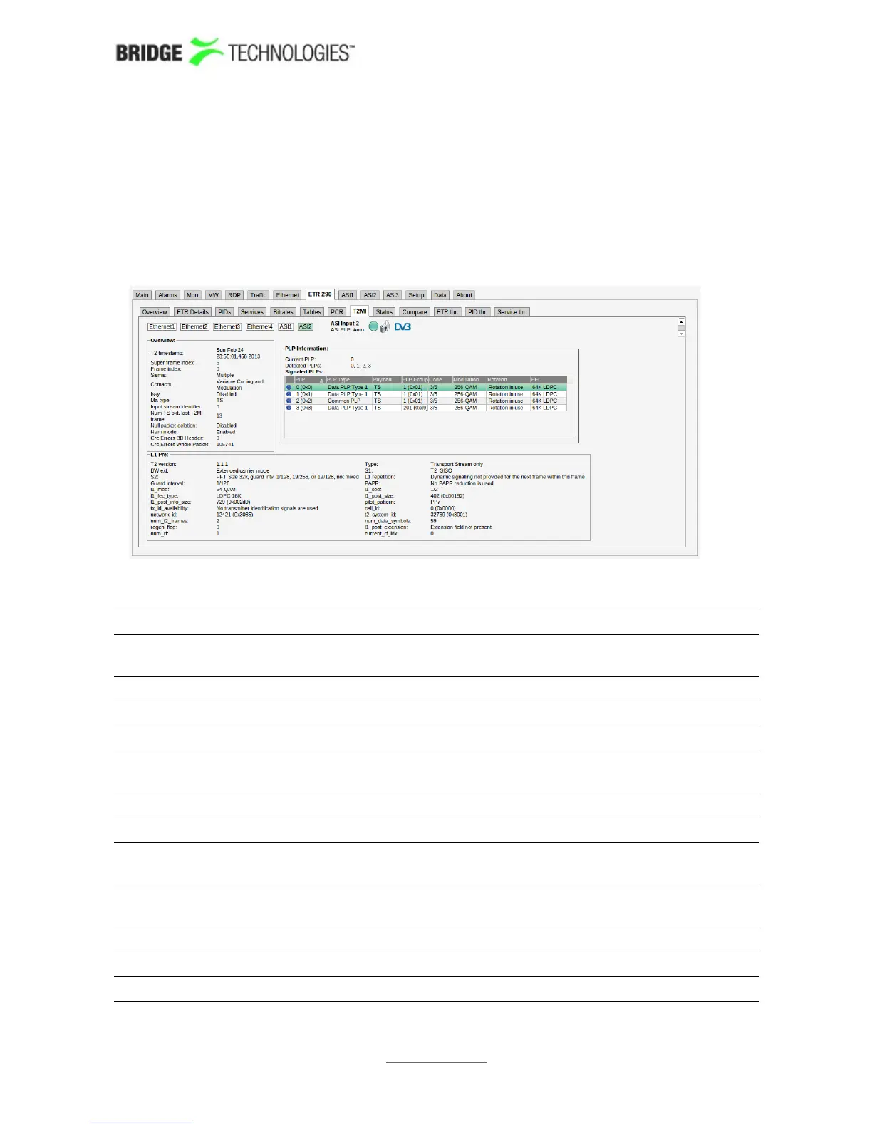 this GUI extracted from the L1 current packets in the T2MI streams. The full parsing of