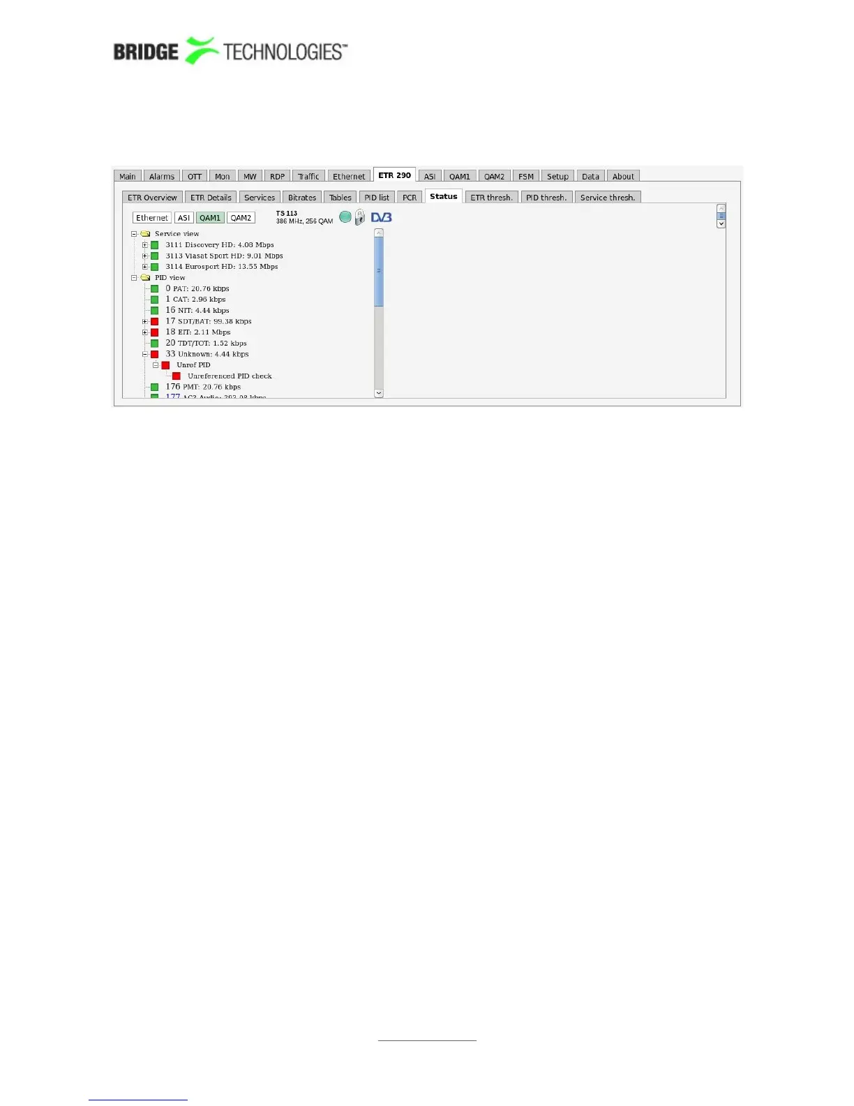 the same details that are available in the ETR 290 - Service view plus status and