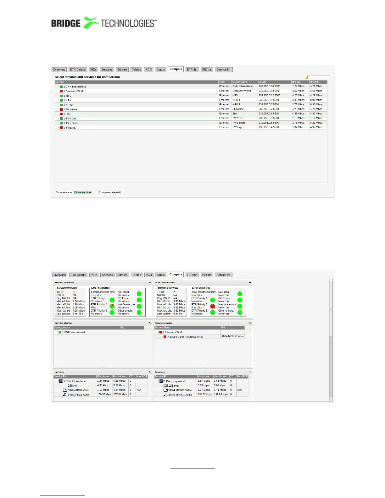 status. The number of streams that can be compared depends on screen size.