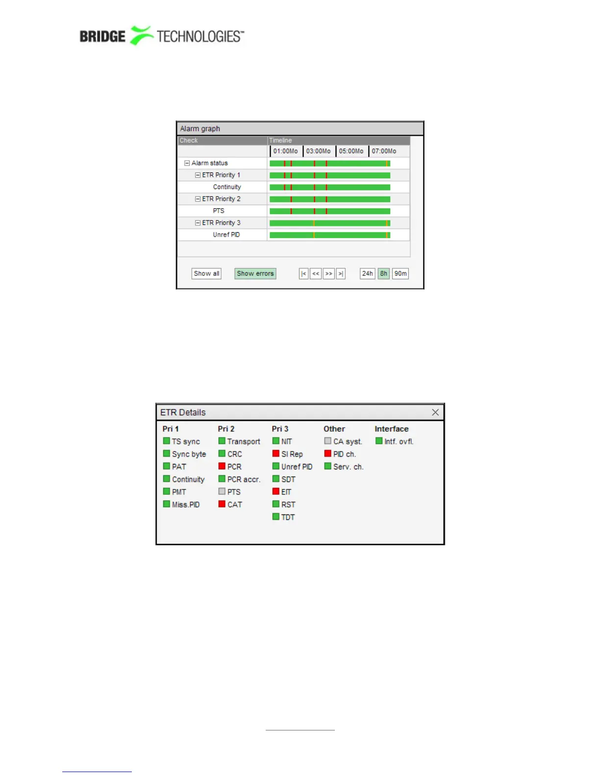 The Alarm graph subview shows similar alarm graphs as the ETR - ETR details -