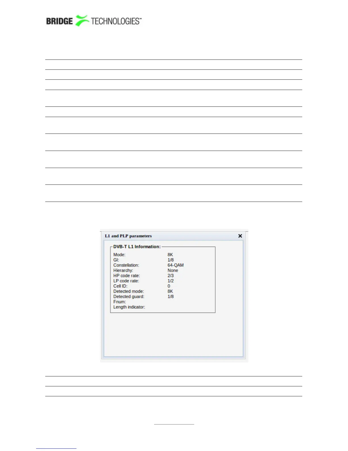 Click the Show L1 and PLP parameters button to view L1 and PLP details.