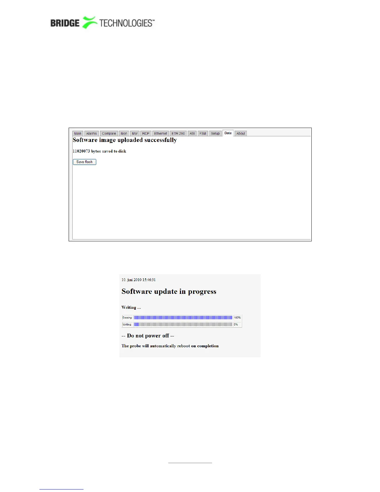 Note that the probe will reboot when new software is successfully stored in flash, and