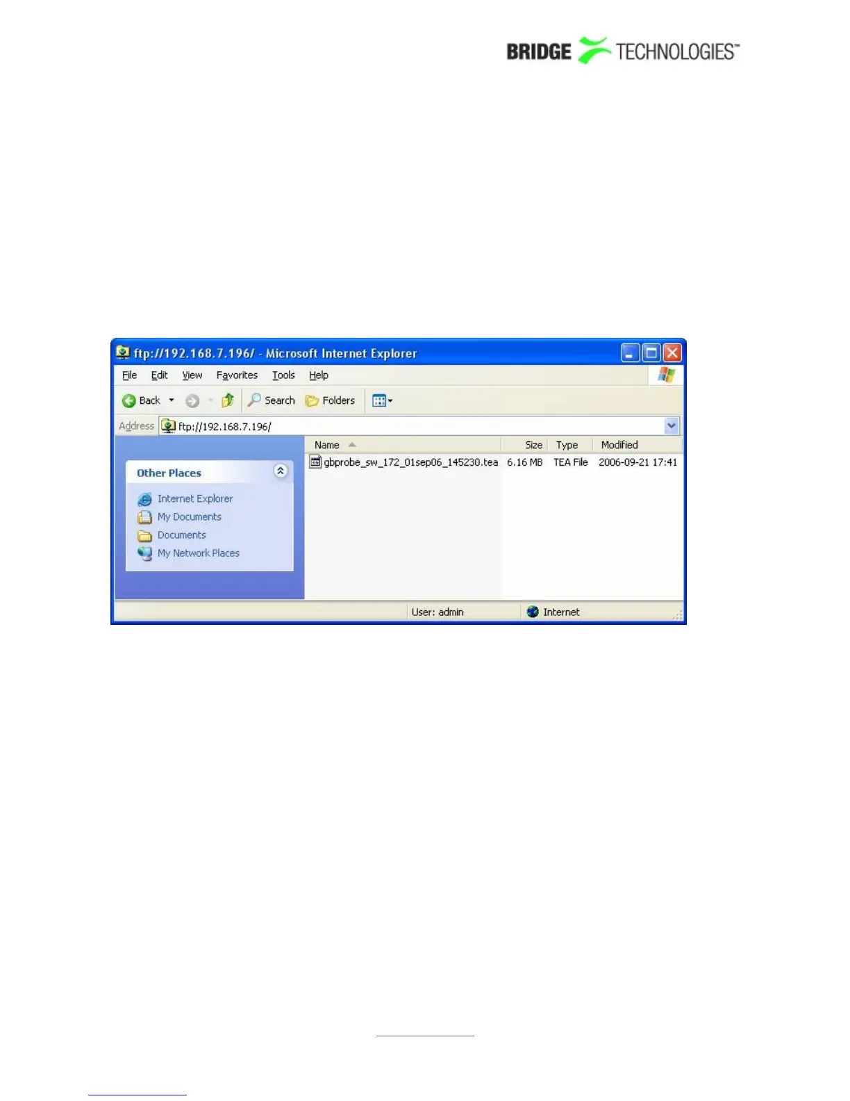 Internet Explorer window. When the file has been copied onto the probe the Internet