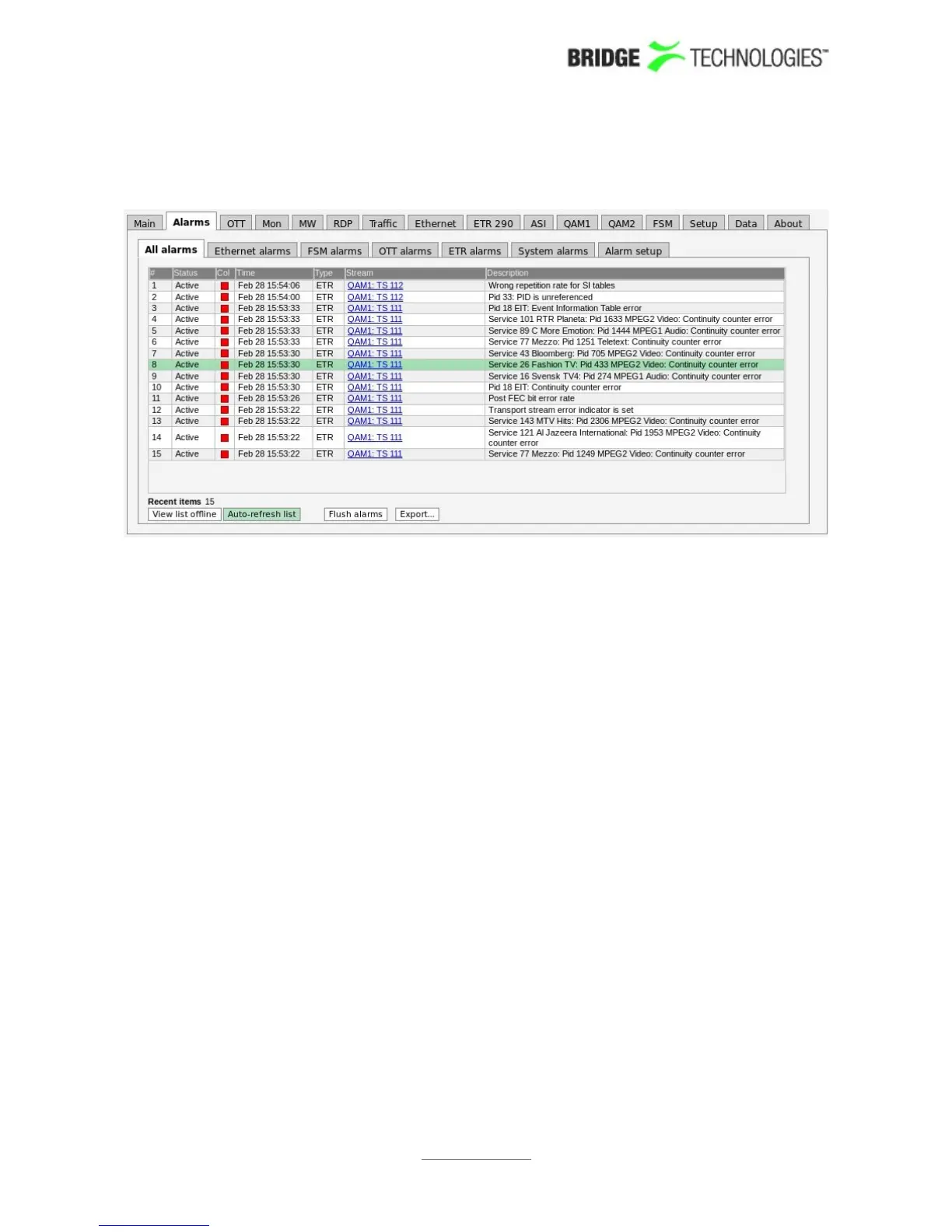 as one complete list. The Ethernet alarms list, FSM alarms list, ETR alarms list and