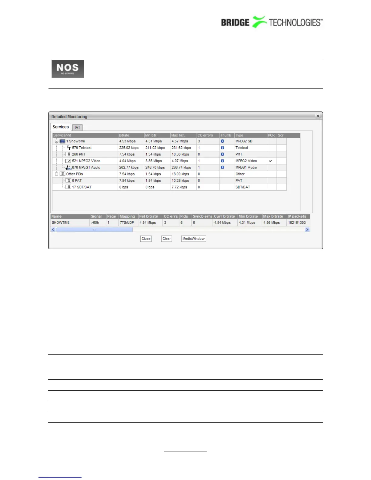 PSI/SI tables. PIDs that do not belong to a service are denoted “Other