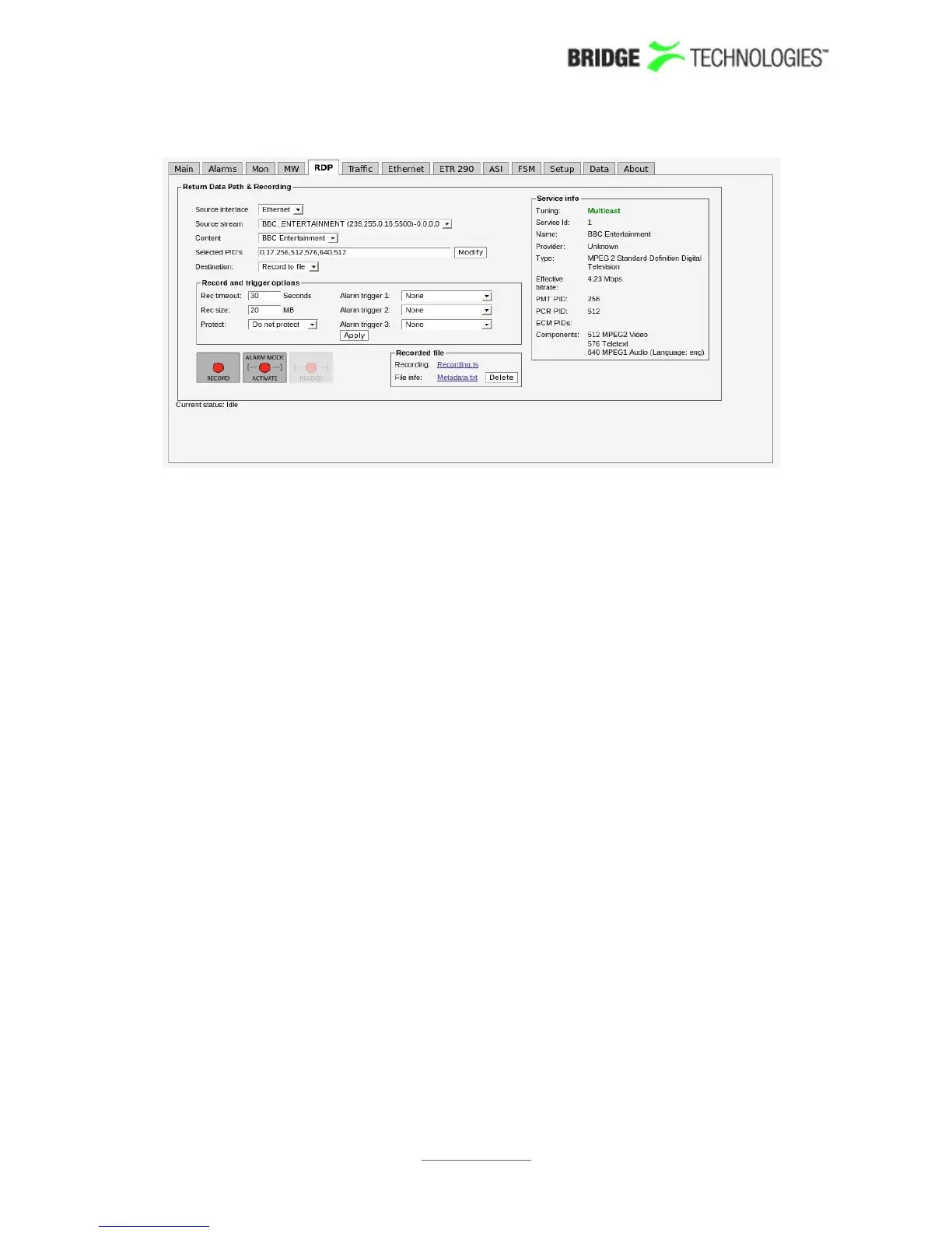further analysis. The recording can be of an Ethernet multicast or one of the RF/ASI