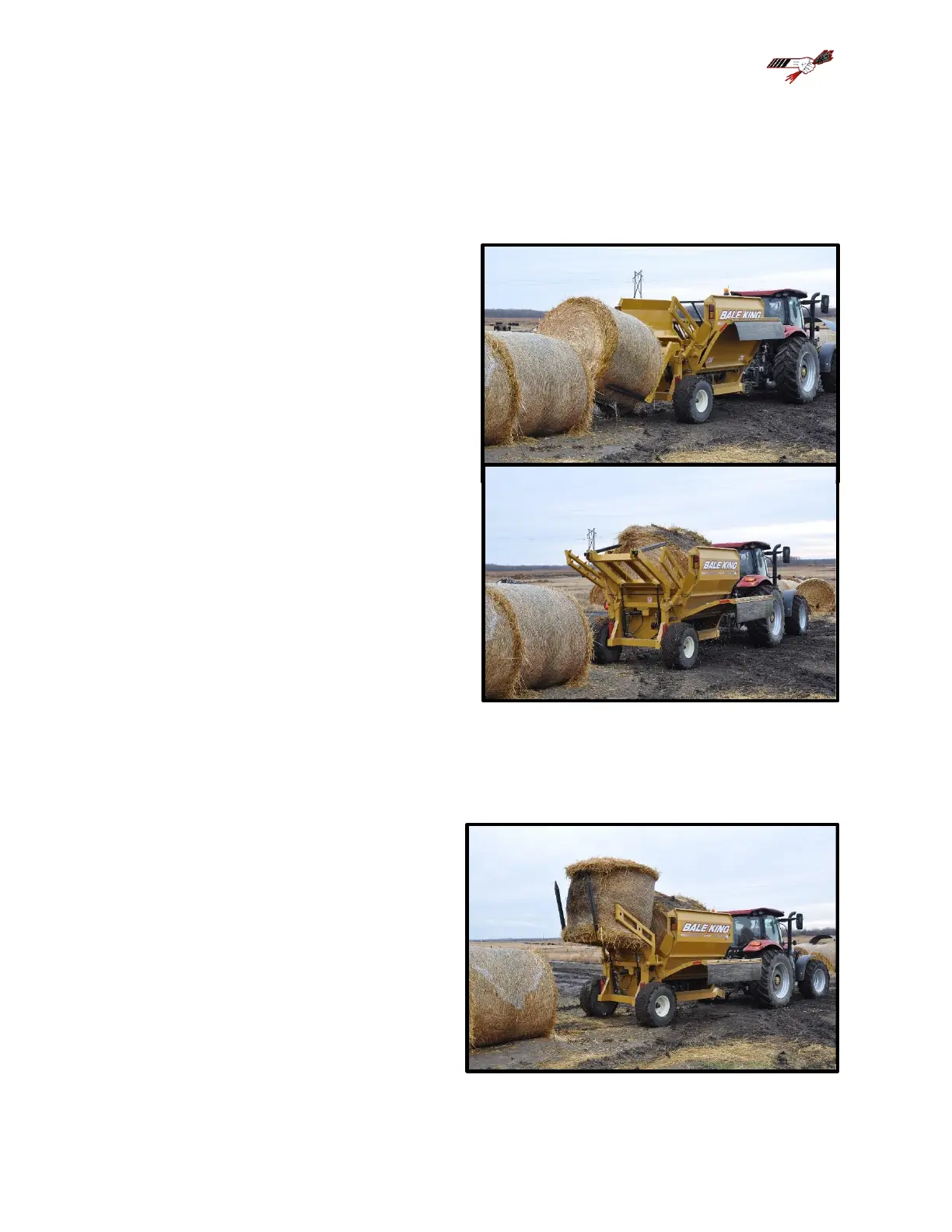 1. Position the tractor and the Bale King so as to be lined up to back straight into the row of