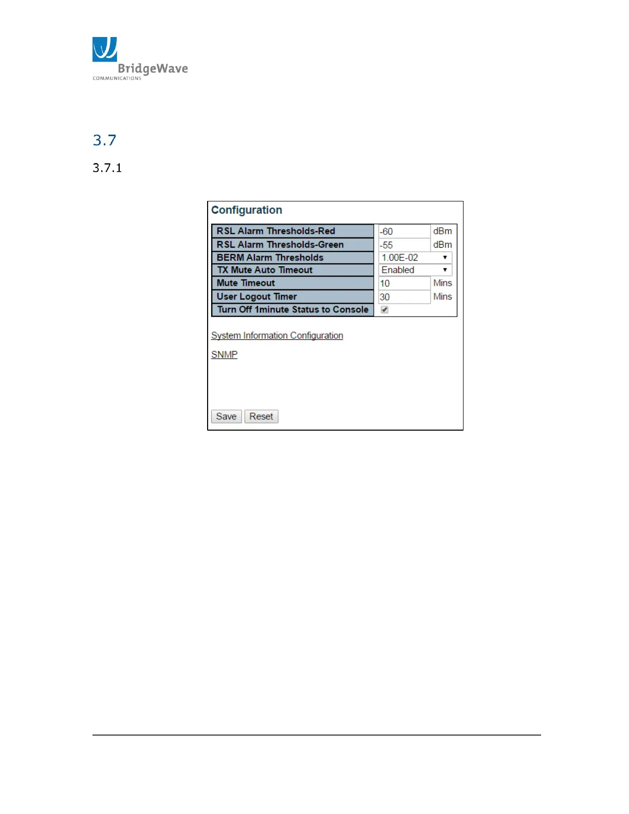 This page allows the configuration of Alarm Thresholds, Tx Mute options as