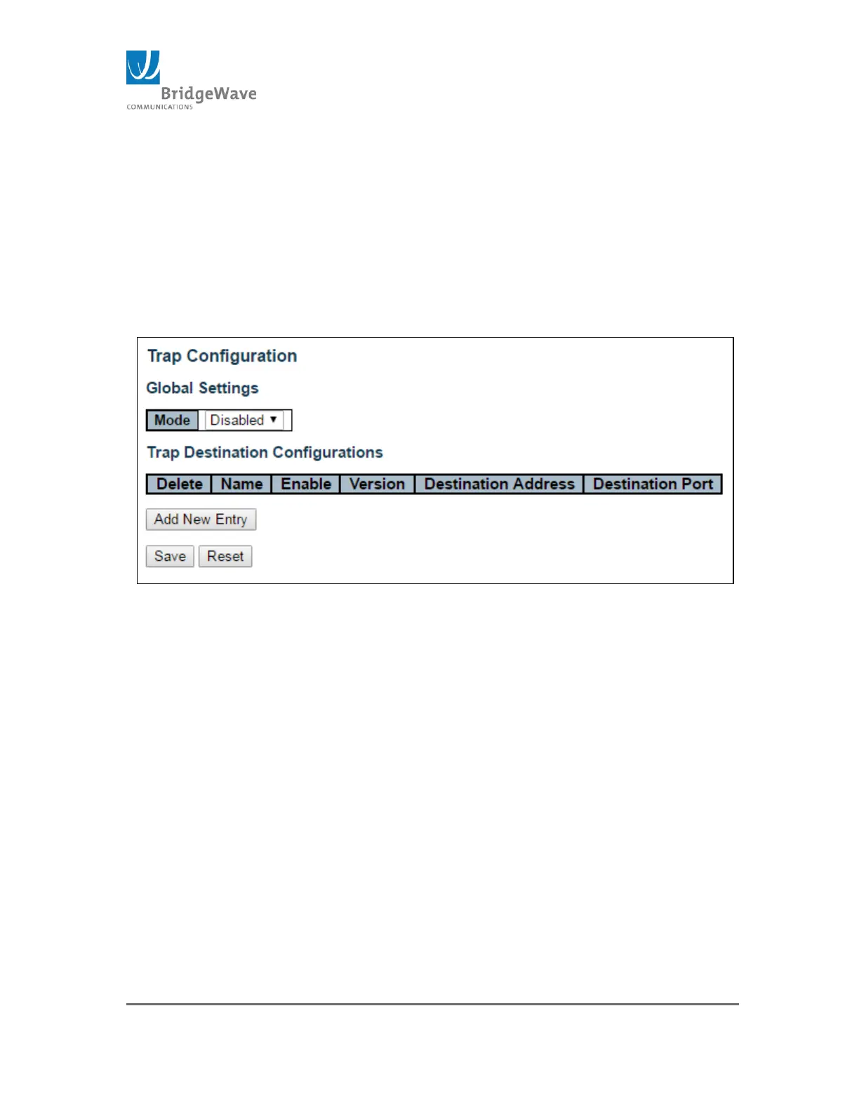 This page allows for the configuration of SNMP traps.