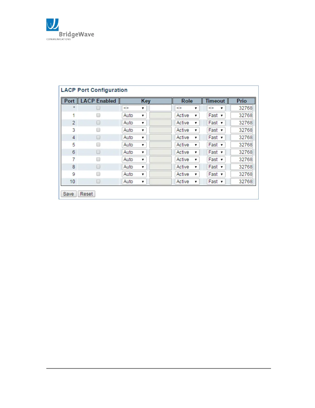 LACP Enabled: Controls whether LACP is enabled on the switch port.