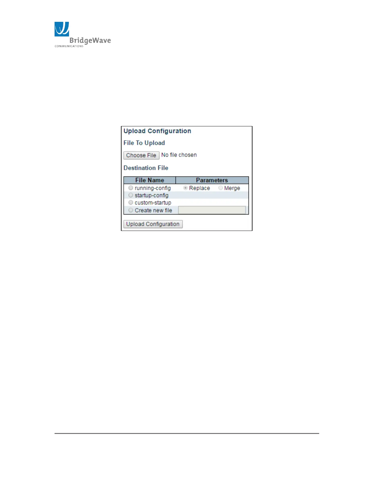 Upload Configuration button: Use this button to upload the new