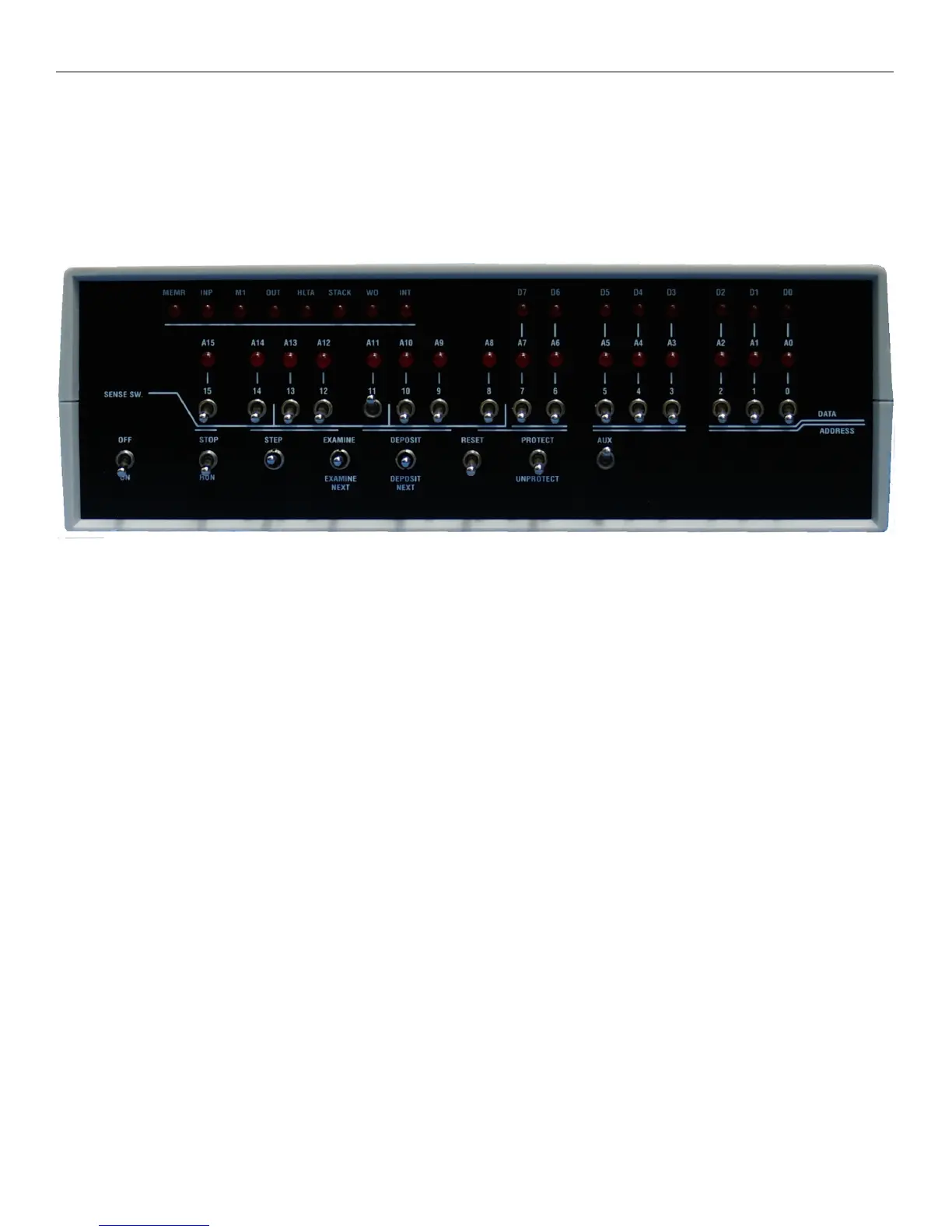 8 of which are called the “SENSE SWITCHES”. There are momentary switches to STEP, DEPOSIT and