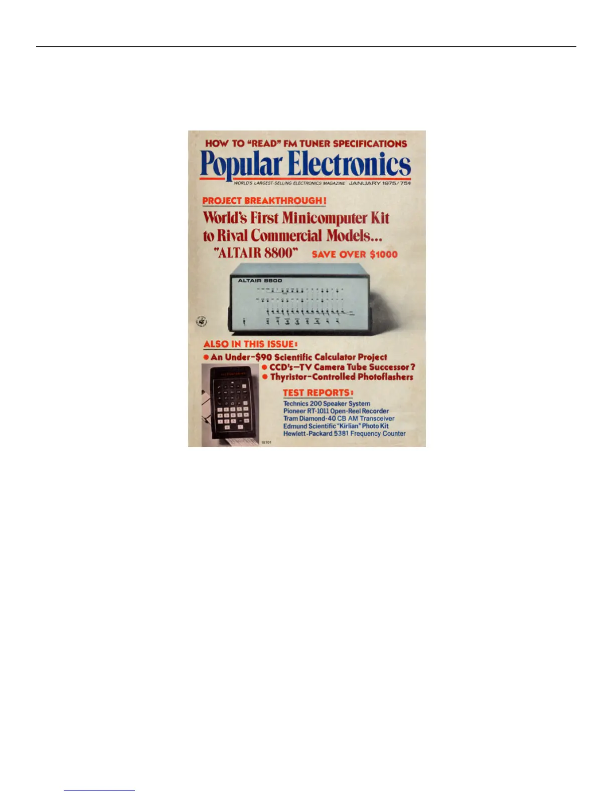 January 1975 Popular Electronics featuring the ALTAIR 8800