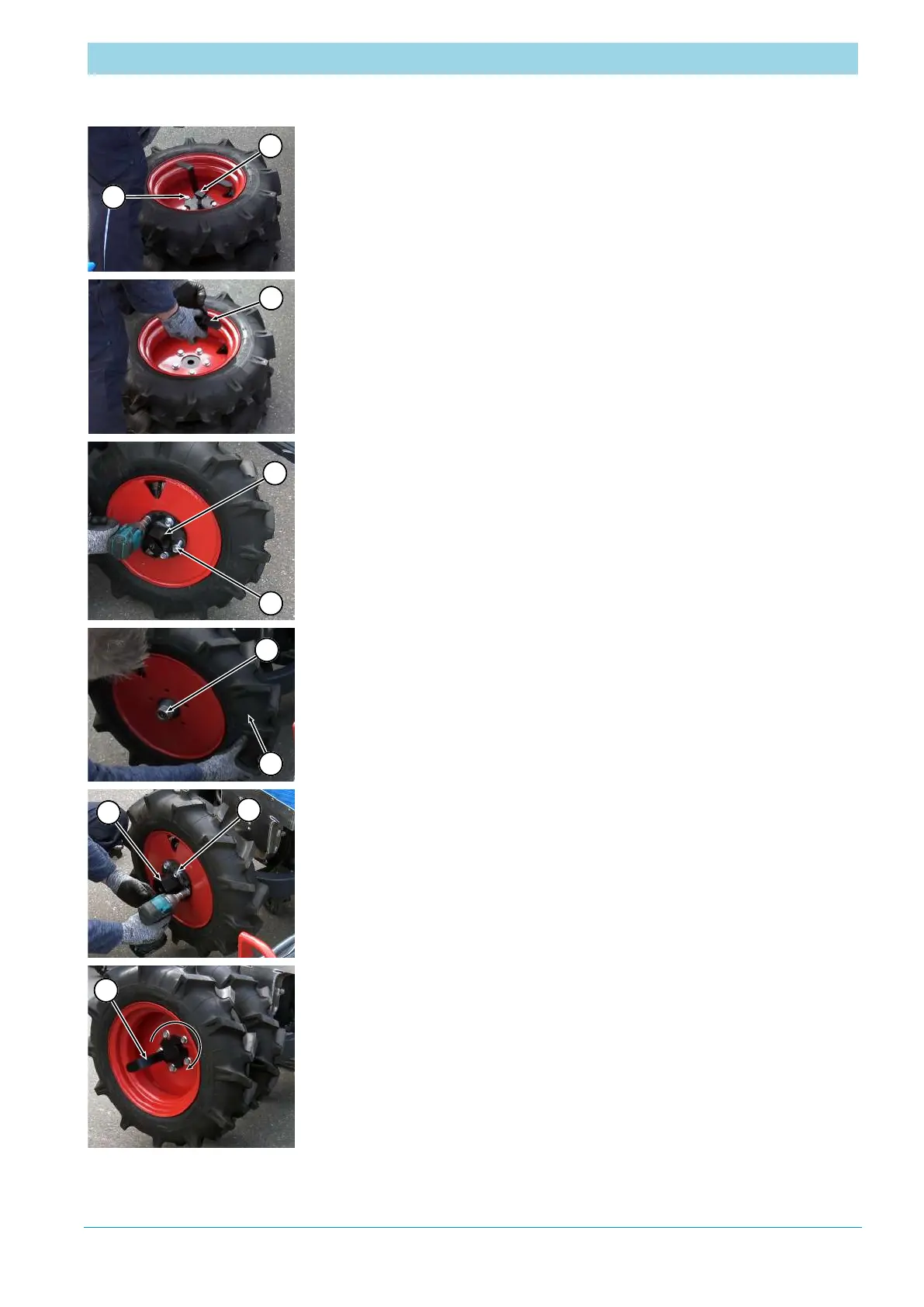 f) Fit the inner wheel (6) onto the wheel axle (7).
