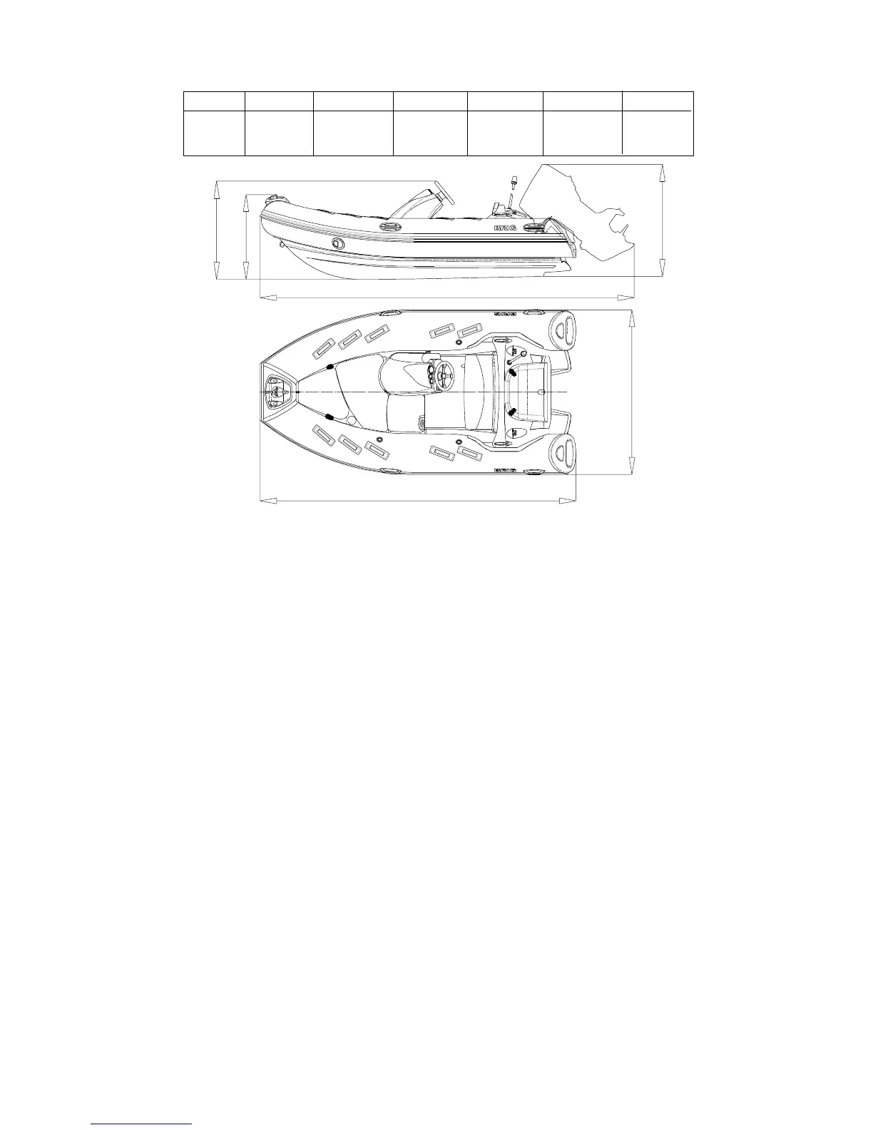 The length of the boat with the engine can vary depending on the model of the engine and the angle of its deviation. (See Fig. T2)