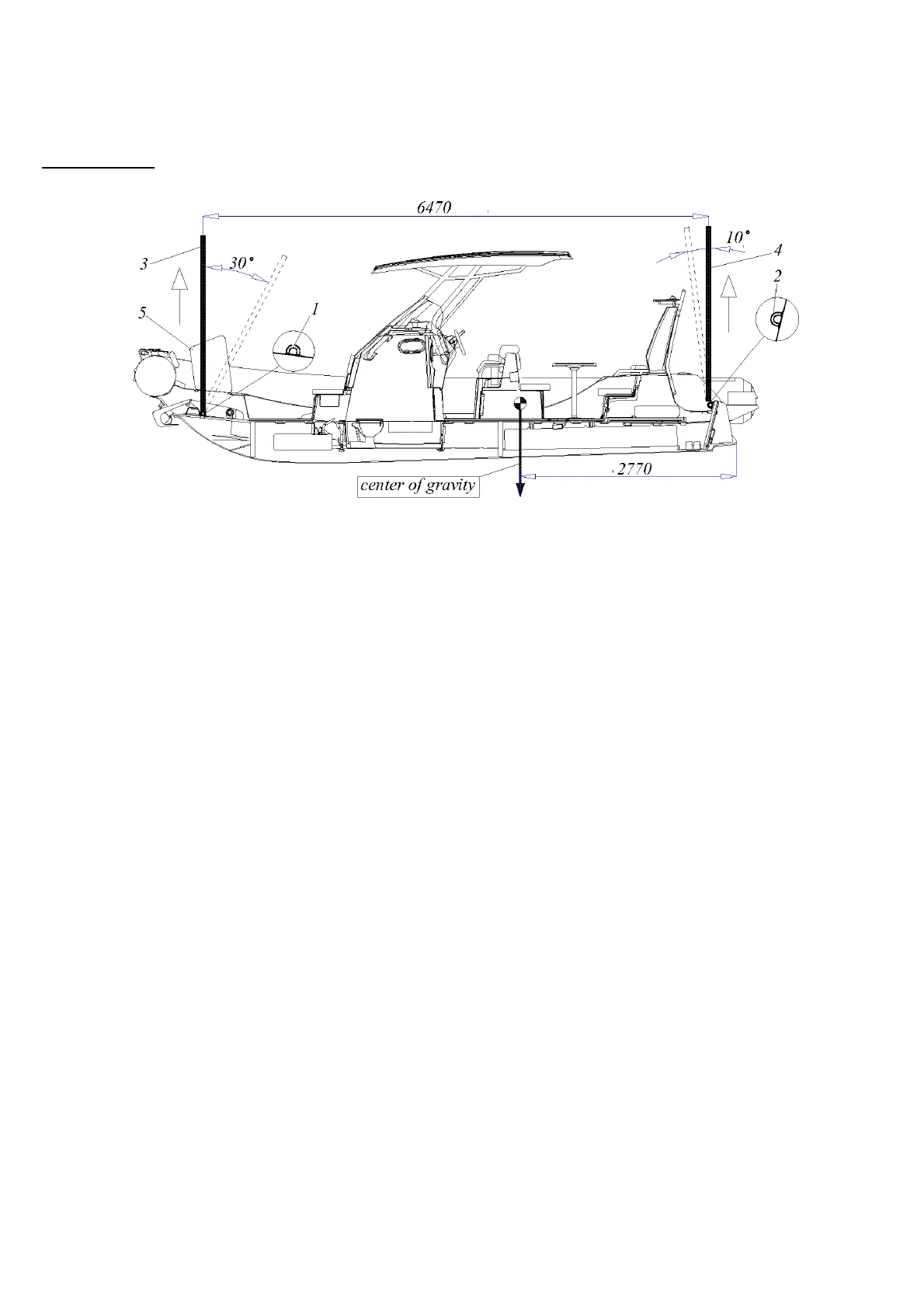 You can see the diagram of the boat slinging for lifting in Fig. 21. Dimensions are in mm.