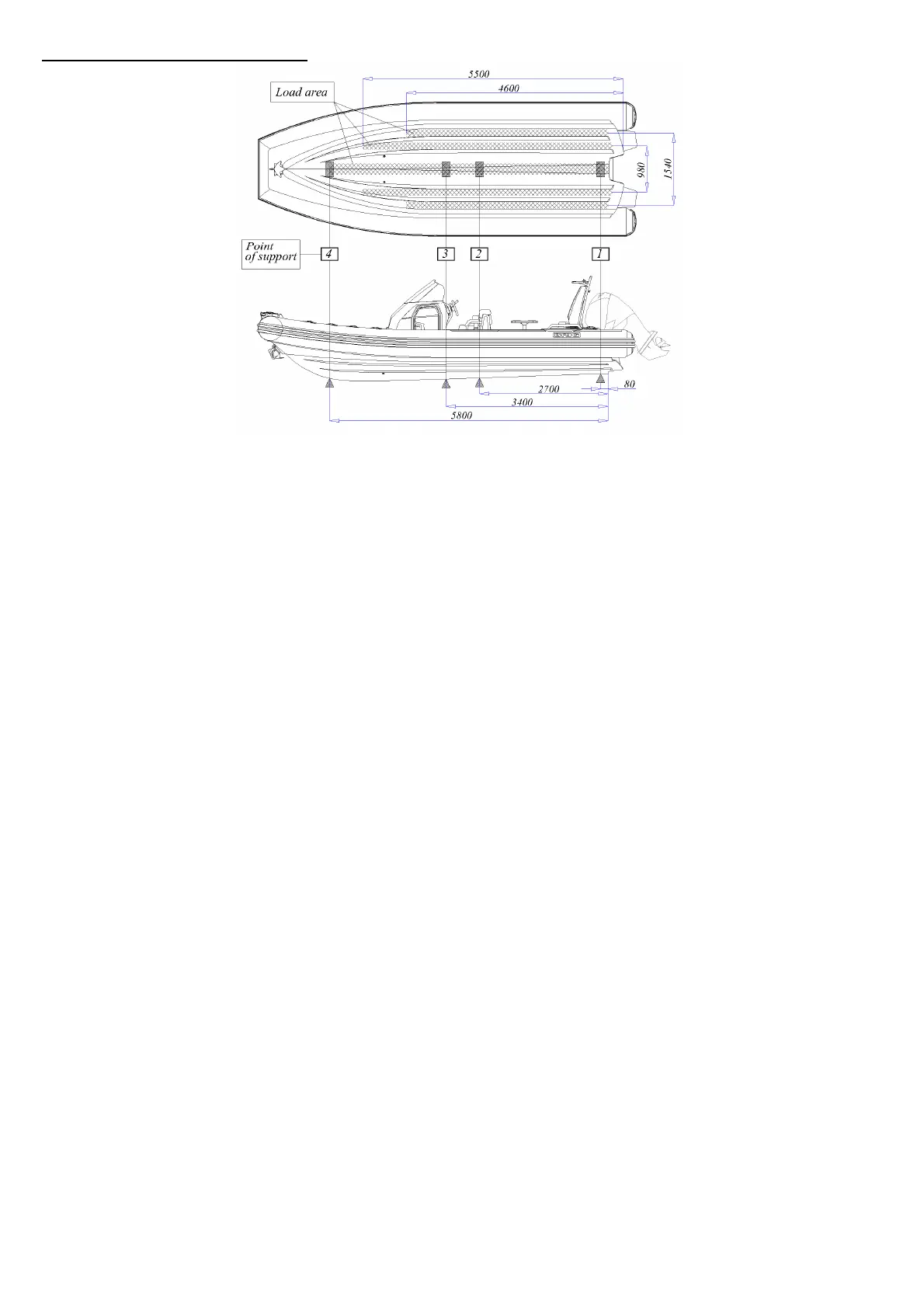 It is possible to install the boat on the Points of support (1), (2), (3), (4). Point of support (1) must be use always and
