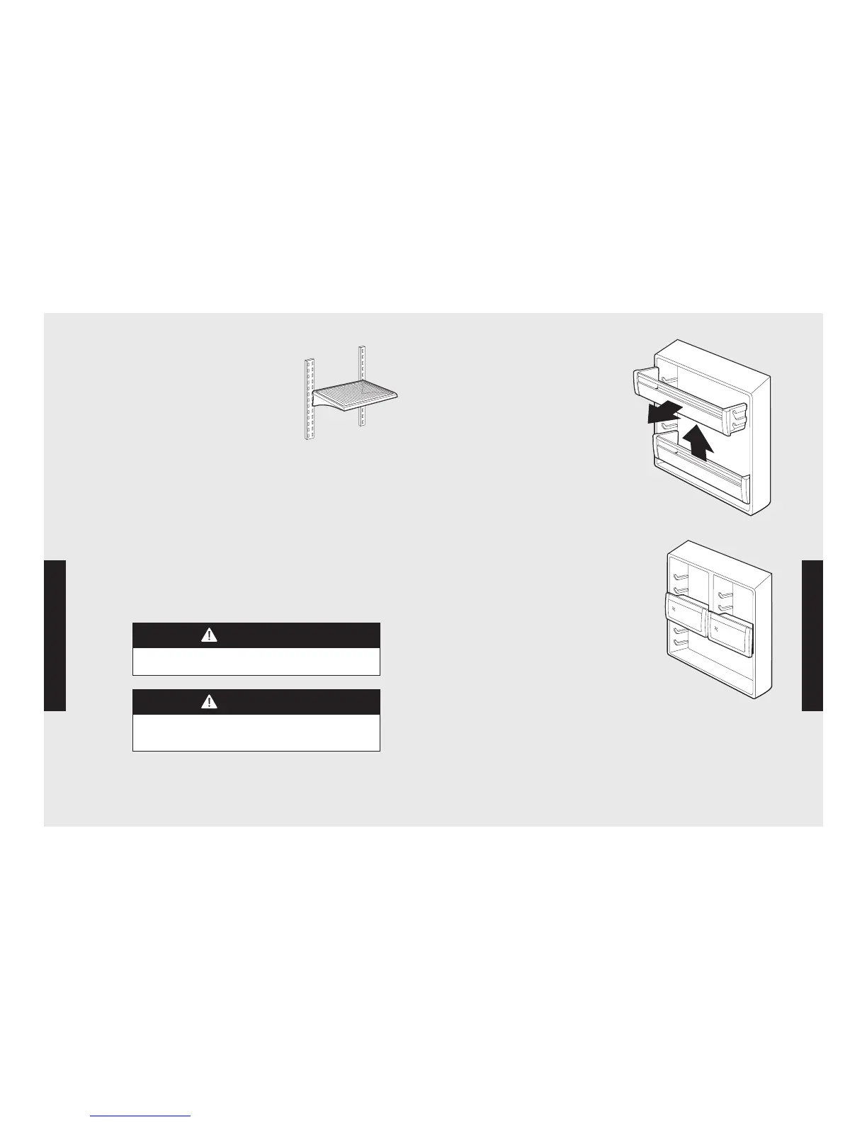 To replace shelves, guide the rear hooks of the shelf into the