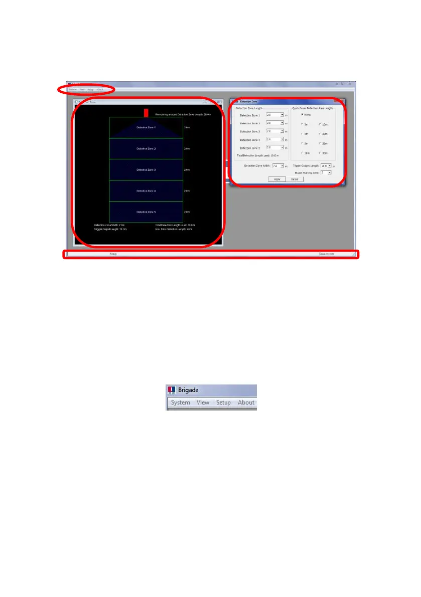 Setup opens the setup windows for the Detection Zones and Blind Zones.
