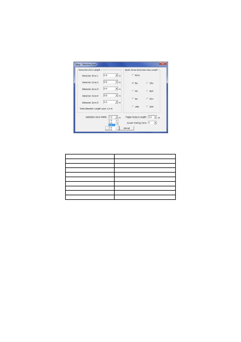 Detection Zone Width ranges from 2.0m to 10.0m with a dependency on the selected “Total