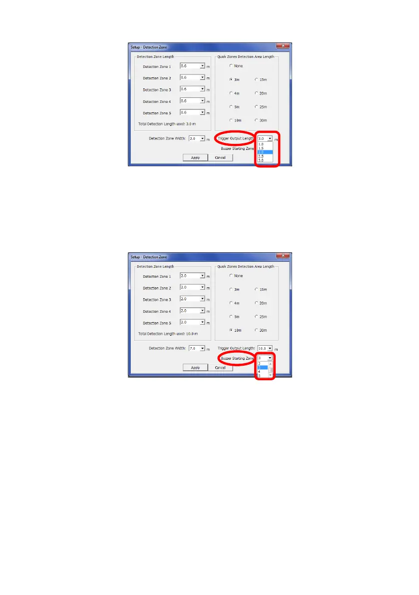 The example below shows the Detection Zone Length at 10.0m with the Buzzer Starting Zone