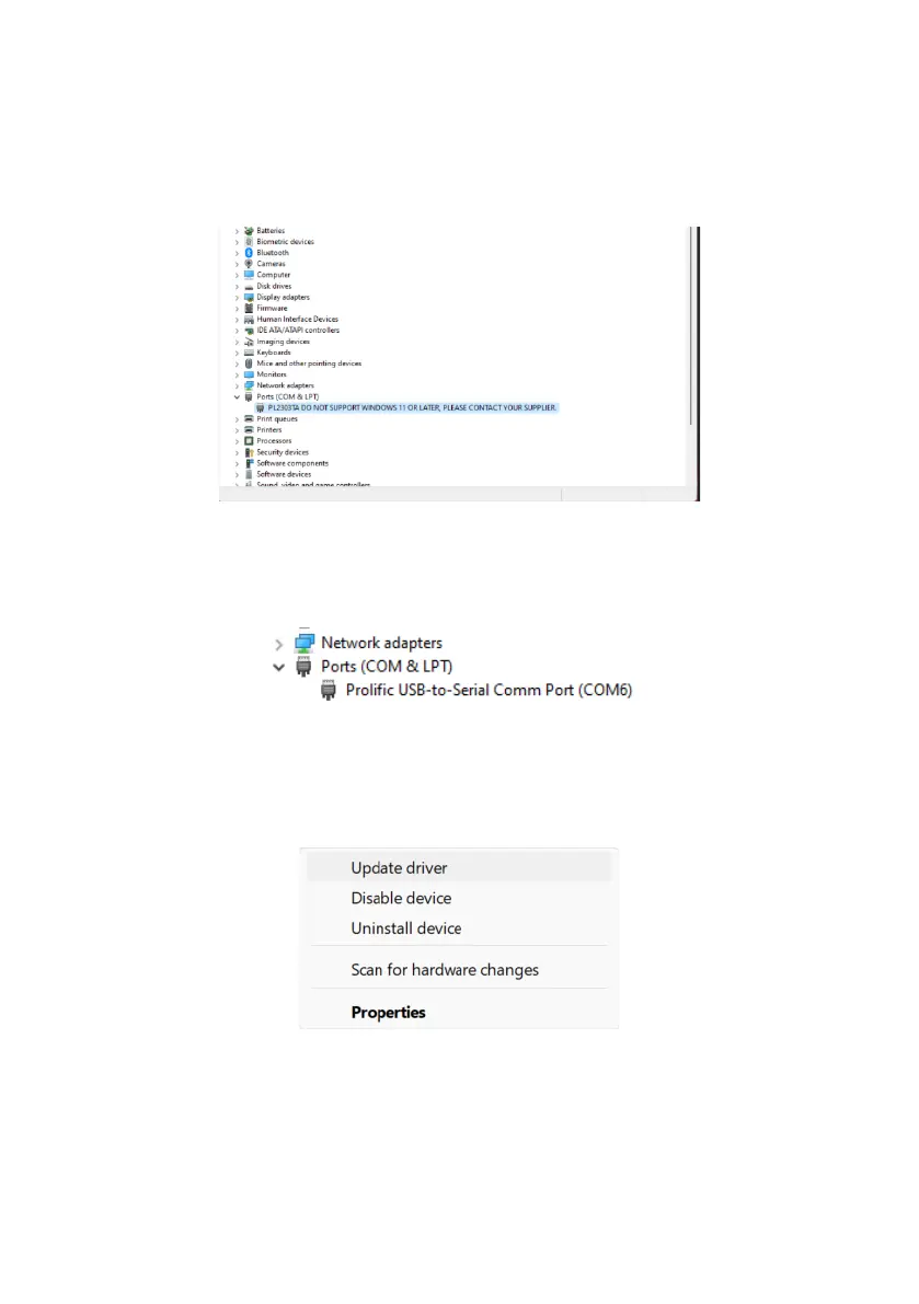 Note: The COM port number displayed may be different to the example shown above.