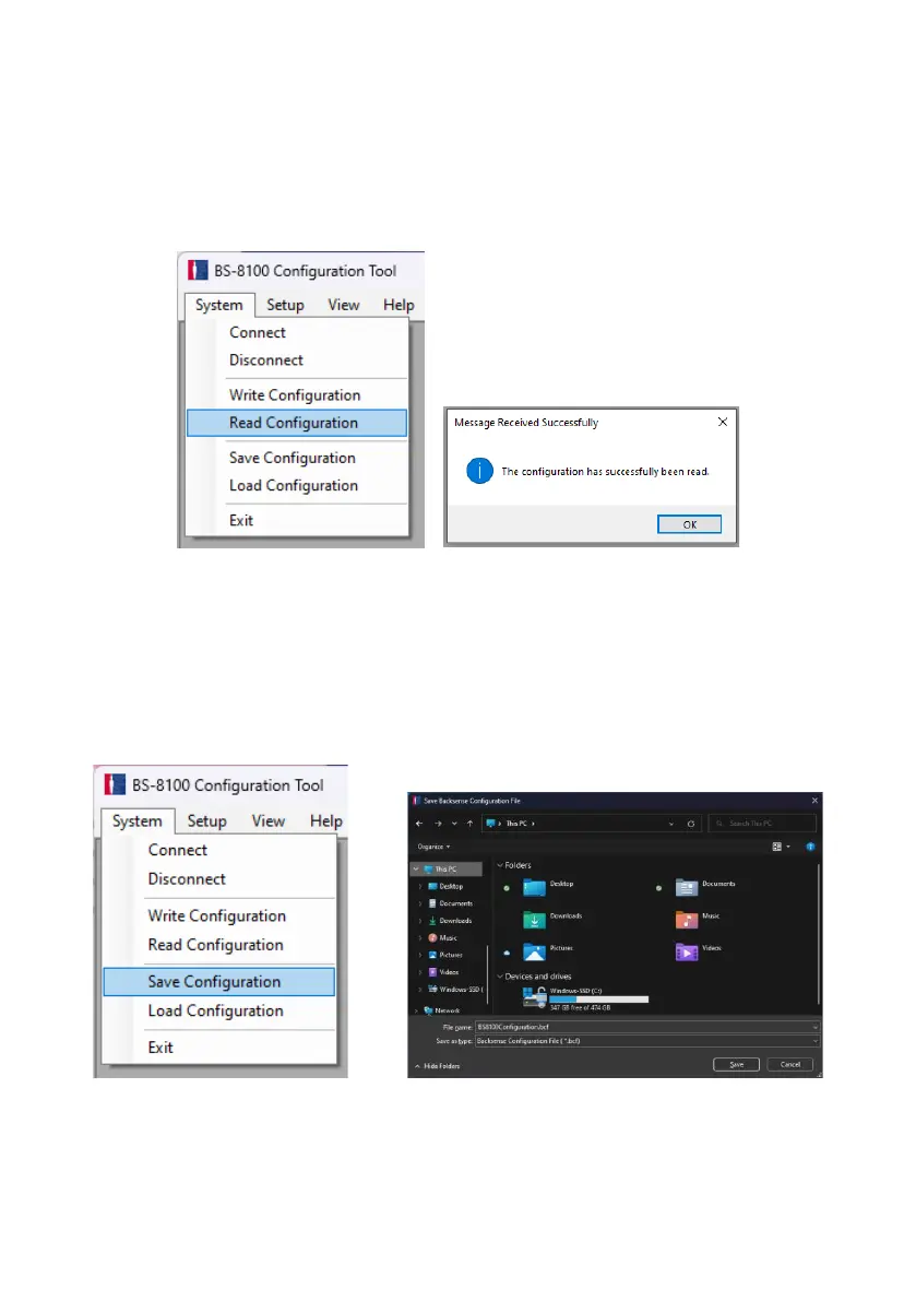 Make sure the Configuration Tool is in connected state. In menu area, click “System” then