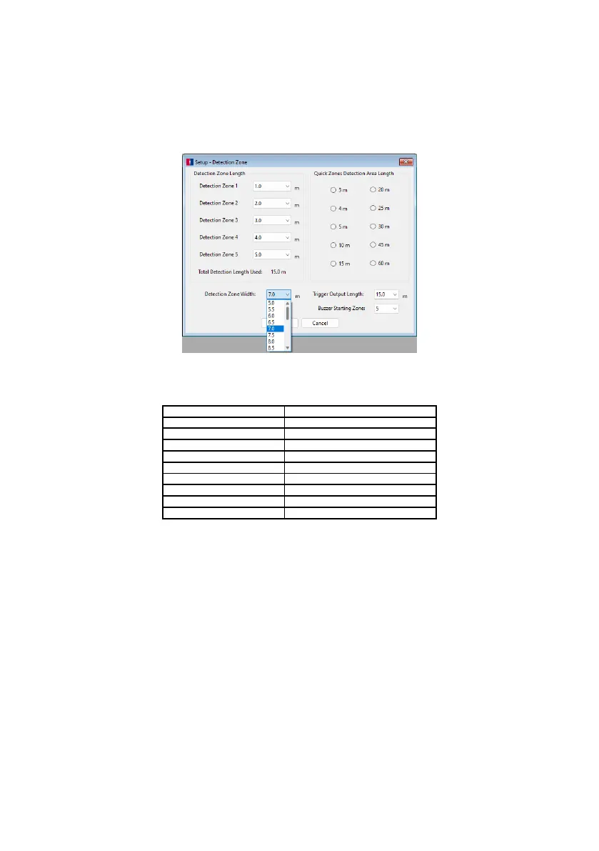 16.0m, with the options available being dependent on the “Total Detection Length” selected.