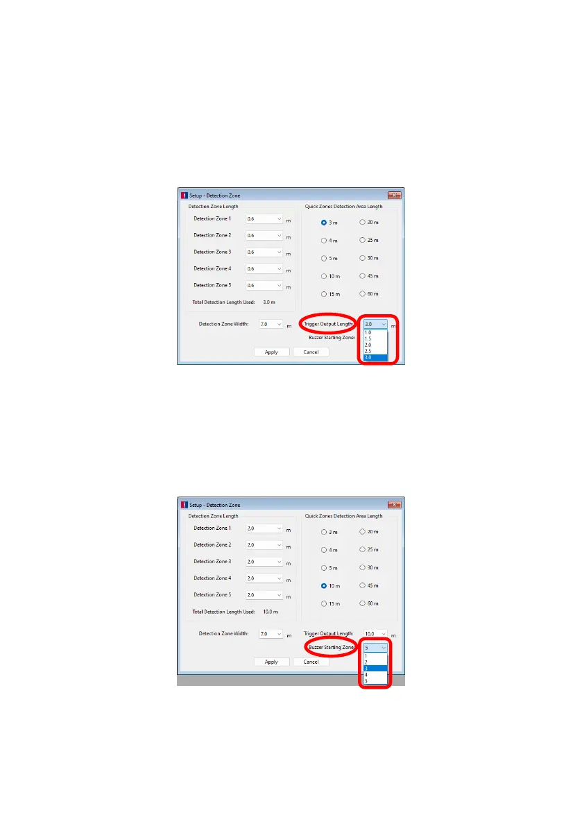 The example below shows the Detection Zone Length at 10.0m with the Buzzer Starting Zone