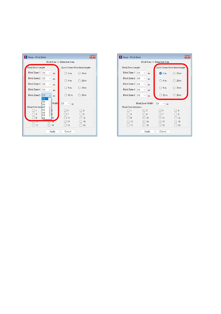 correspond to the cells shown in the Blind Zone view window. Once selected, click “Apply” and