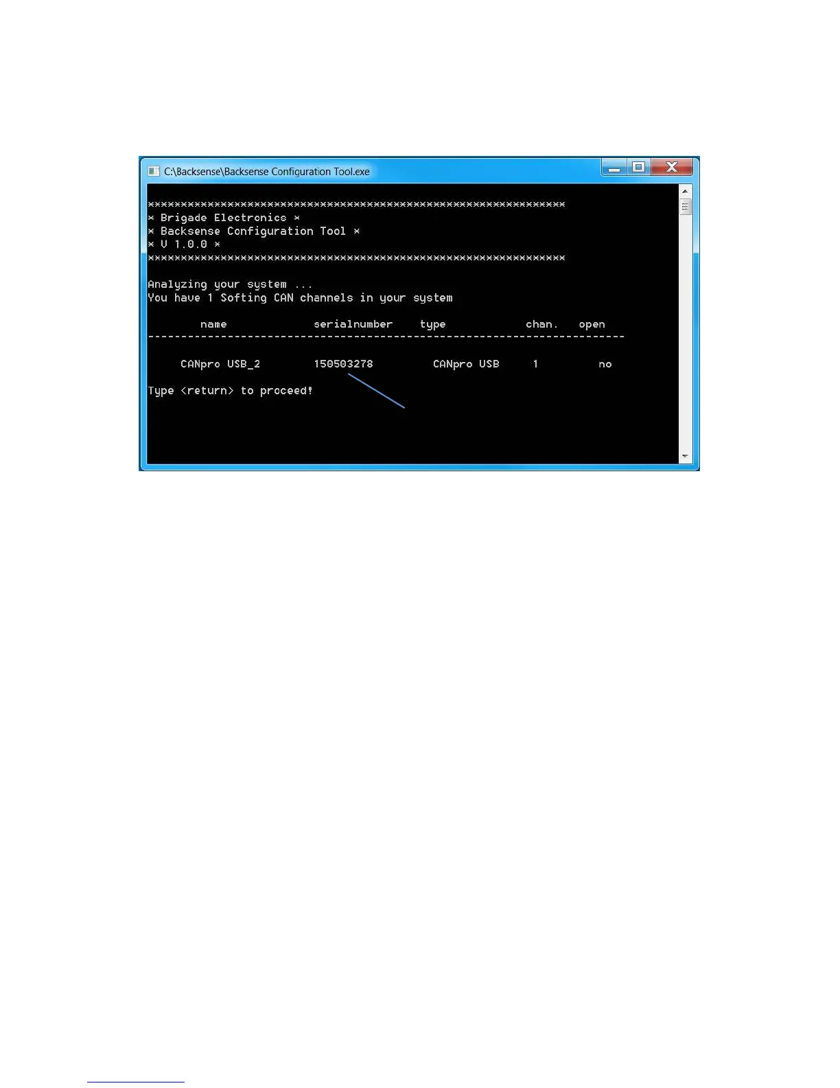 connected CANpro interface is identified by serial number.