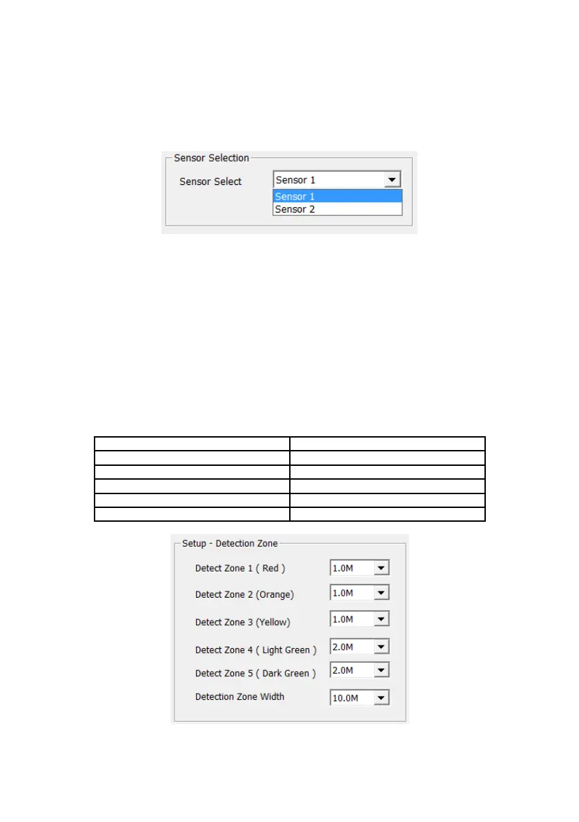 length of all 5 detection zones. The Detection Zone Width is selectable from the drop-down