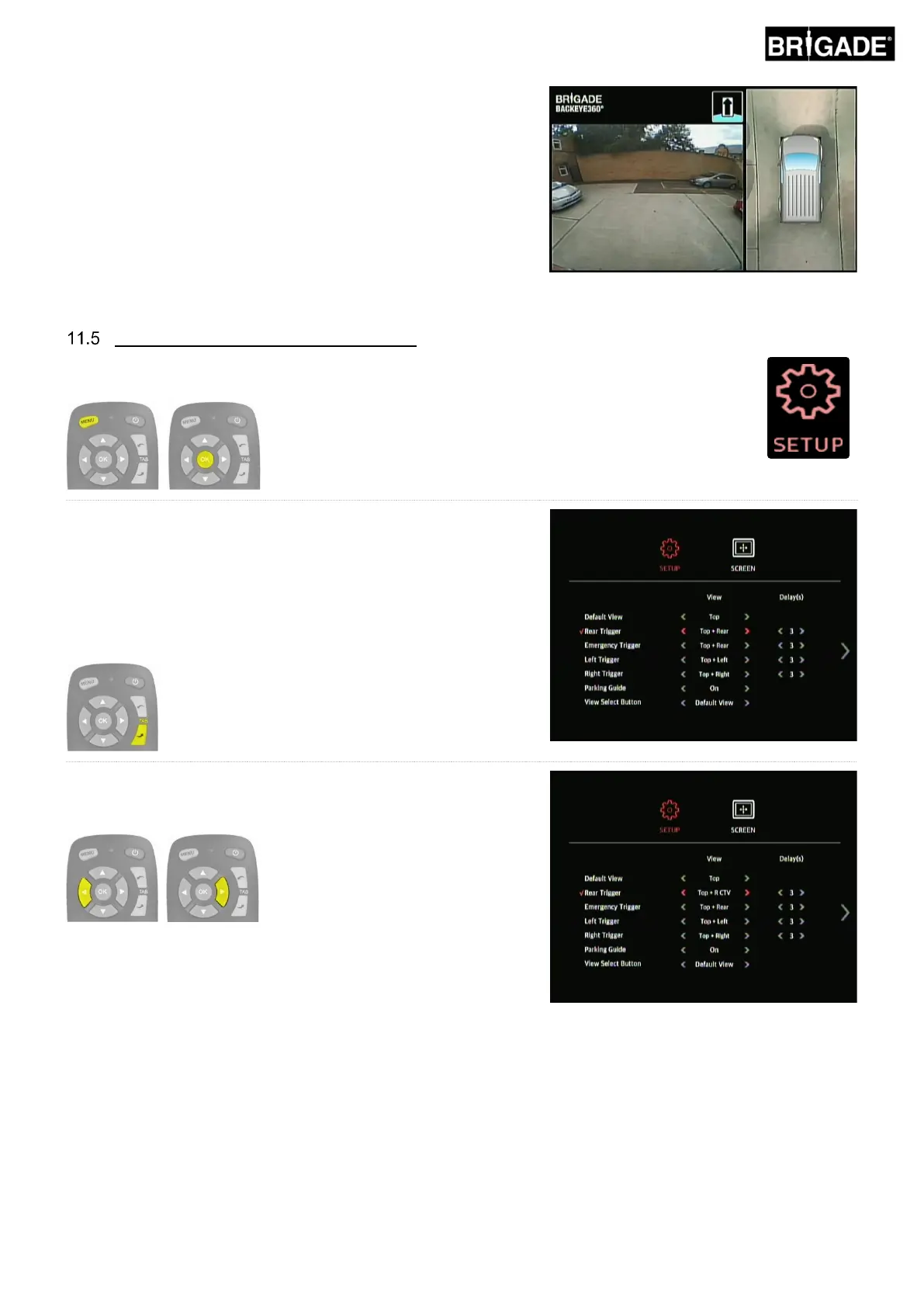 To change which view is triggered for a given trigger, enter the OSD SETUP menu by pressing
