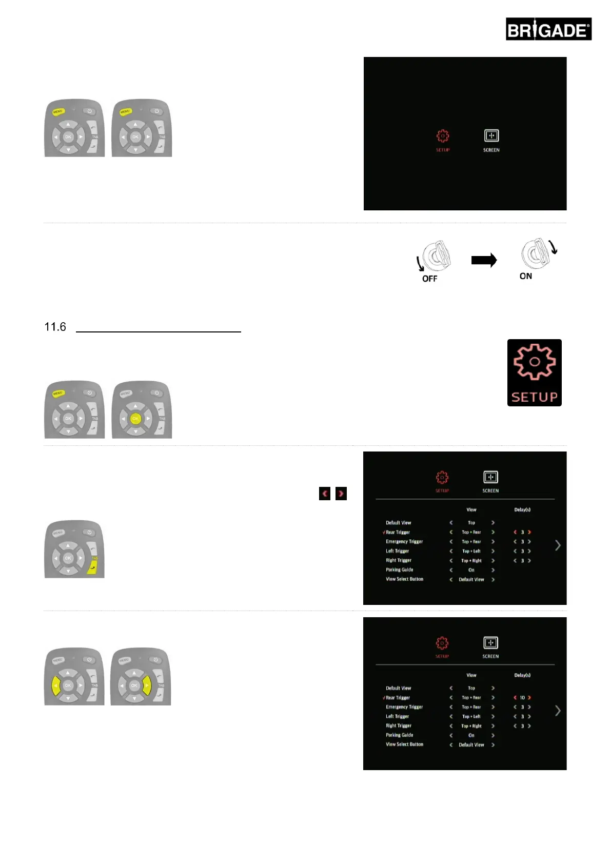 then the trigger delay options, e.g. to select the Rear Trigger delay,