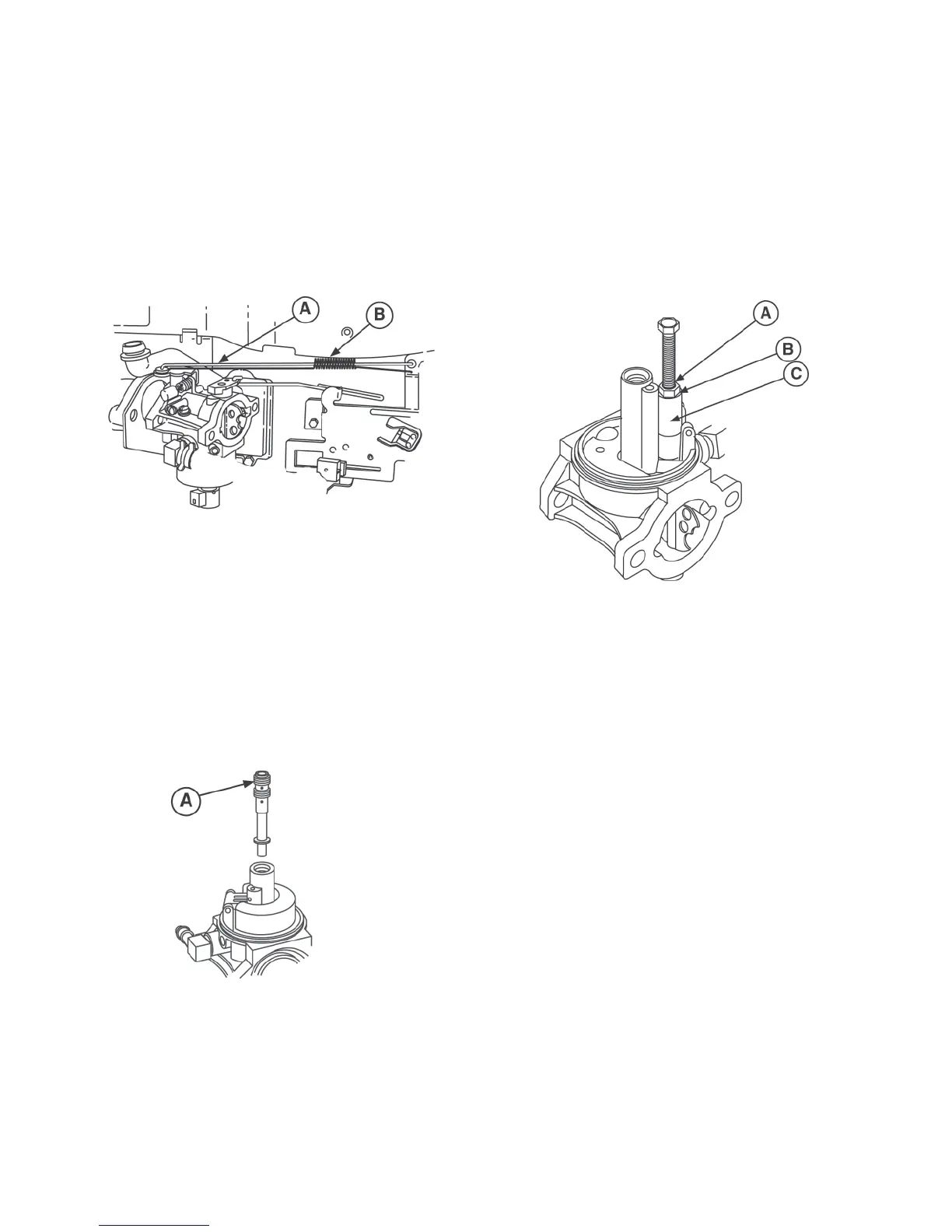 4. Carefully rotate carburetor to disconnect throttle (A,