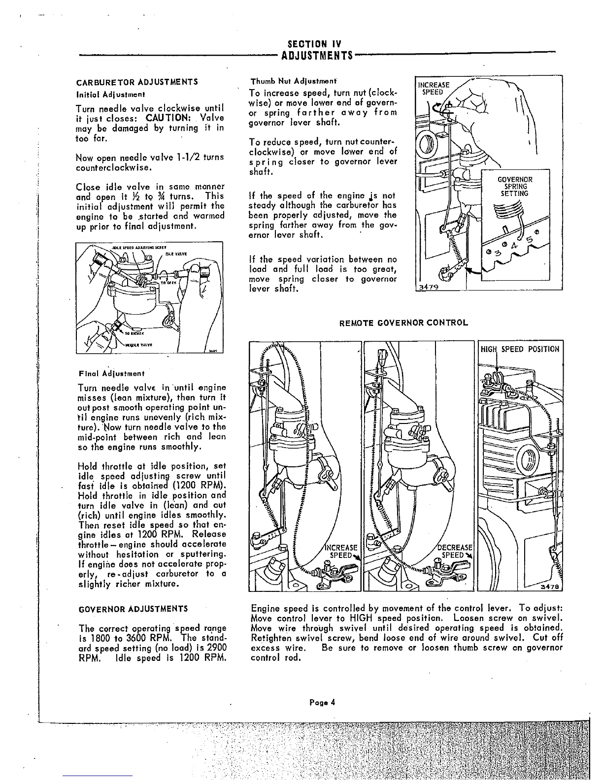 Briggs & Stratton 19D - Adjustments; Carburetor Adjustments; Thumb Nut Adjustment; Remote Governor Control