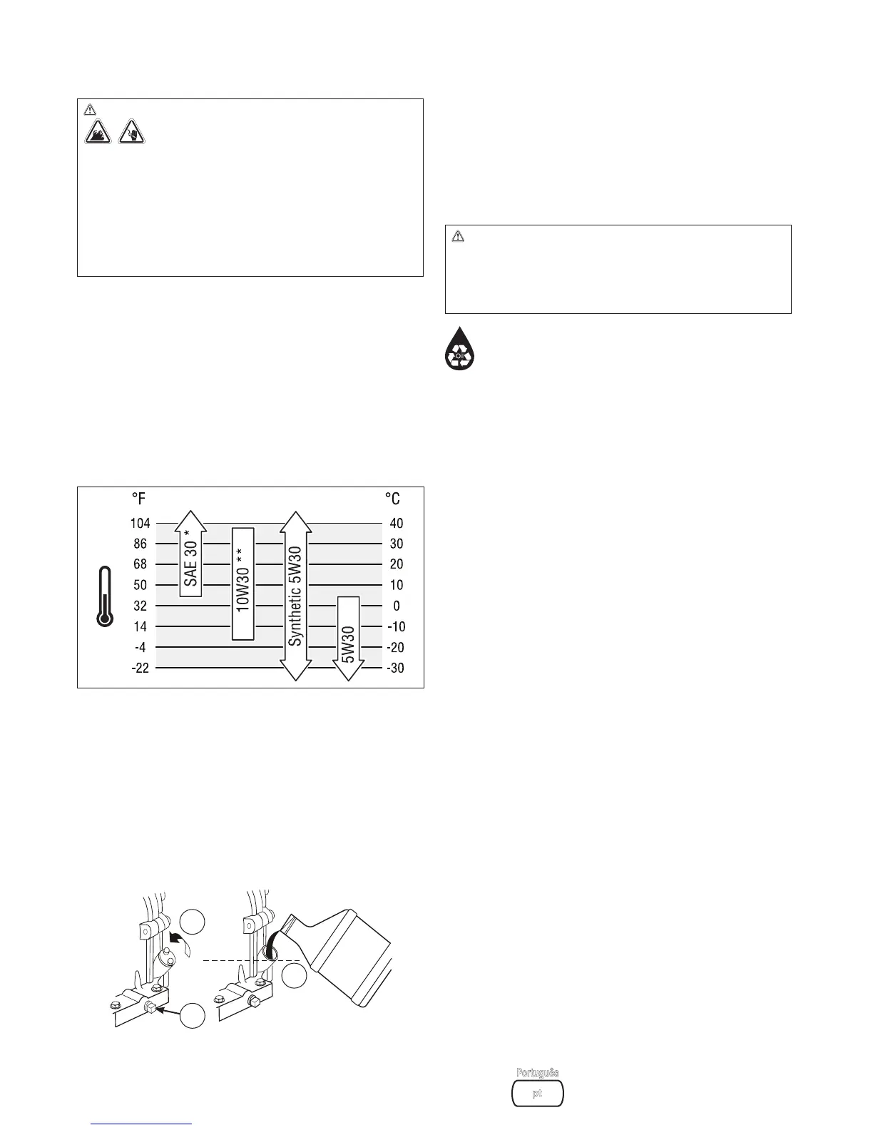 ** Acima de 27 °C (80 °F) o uso de 10W30 poderá causar maior