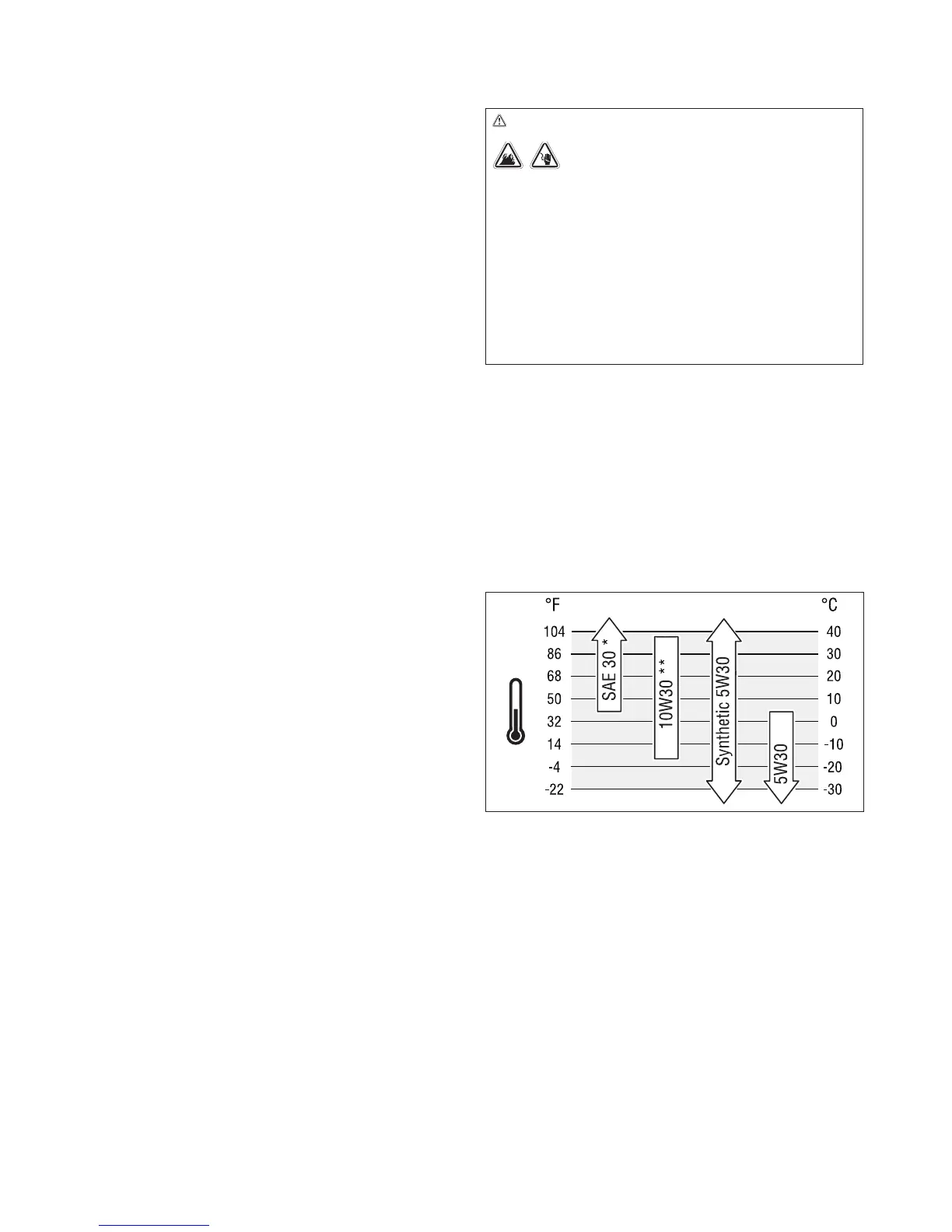 * En-dessous de 4° C (40° F), il sera difficile de démarrer avec l'huile