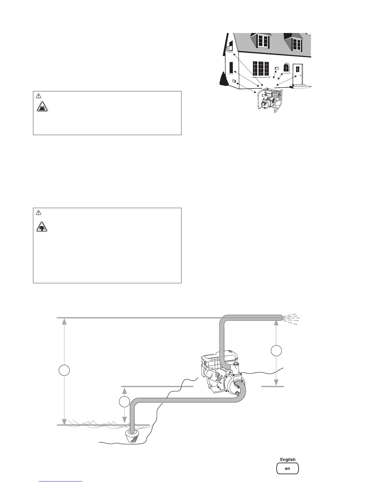 accumulate deadly exhaust gas. DO NOT place water pump