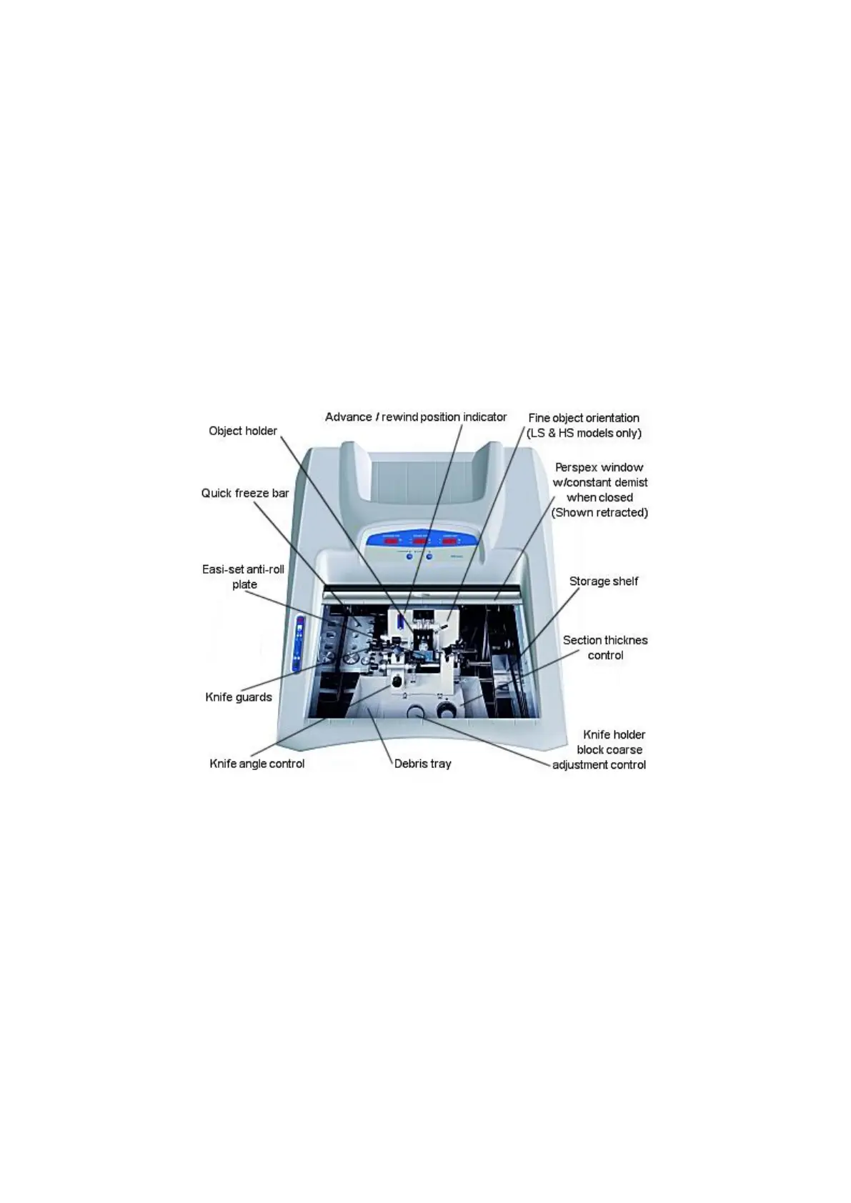 rear wall of the cabinet. After fitting the microtome, (see section 1.2.5), install the left tray in a