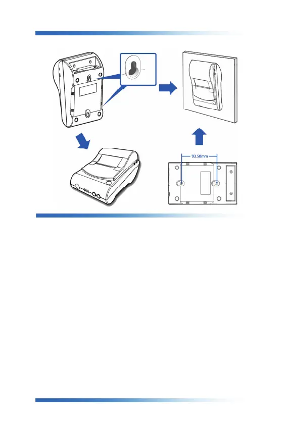 打印机挂在设备上。按照打印机底部两个挂孔的相对位置在设备上安装两个螺丝。打印机