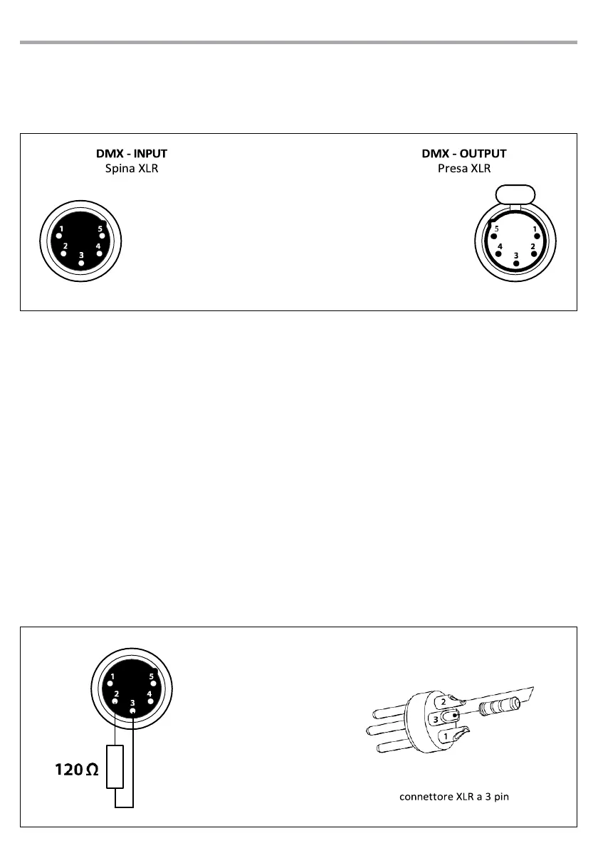 DMX connection employs standard XLR connectors. Use shielded pair-twisted cables with 120Ω imped-