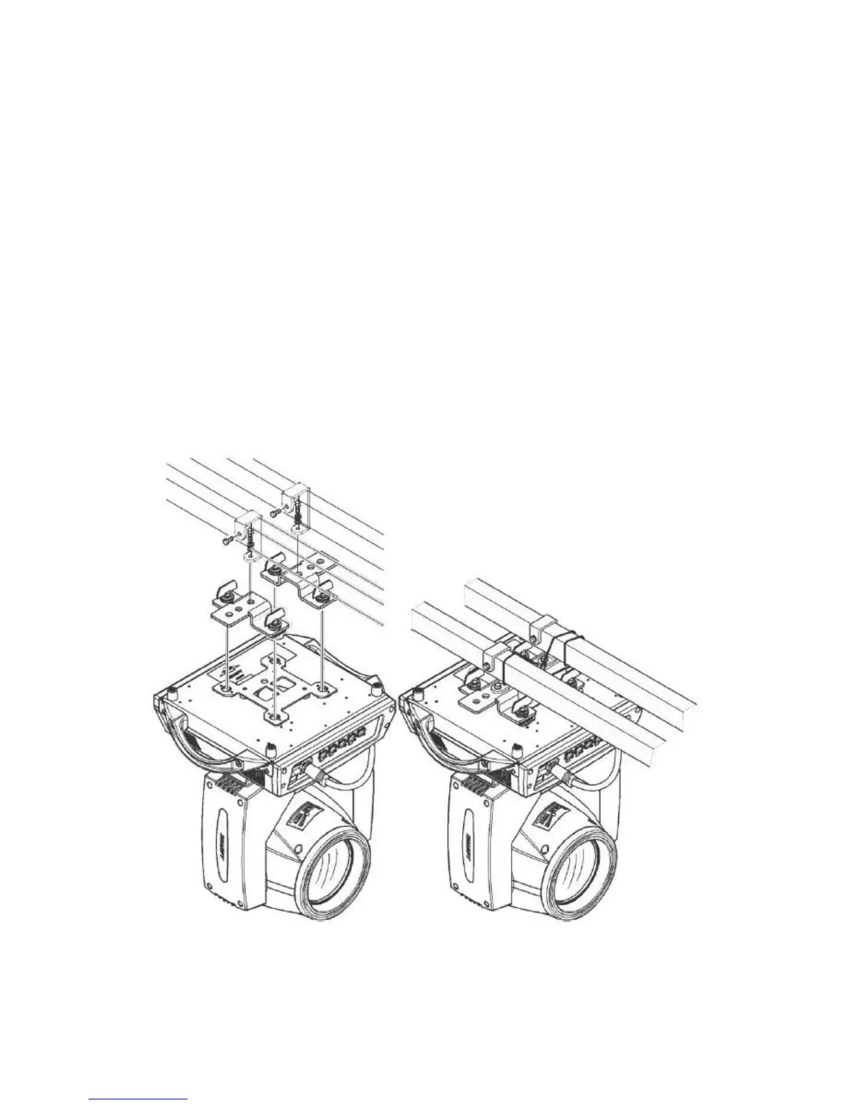 Level the two hanging points at the bottom of clamp. Insert fastener to the bottom, lock the