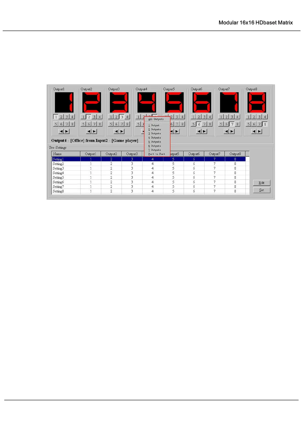 “1 Output” to “7 Outputs”: Set current Output (where mouse right clicked) and the next x-1 ( x