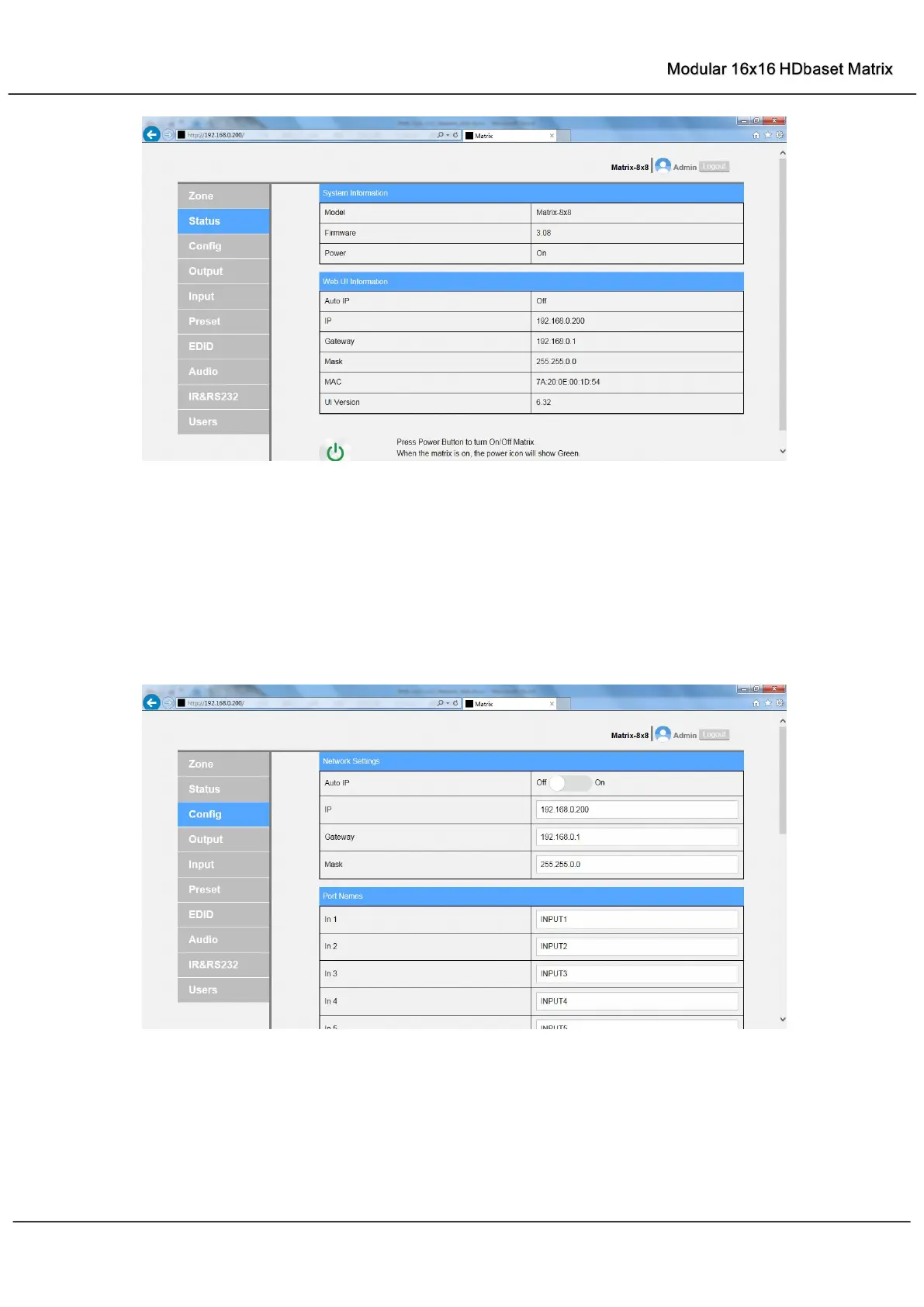 Brightlink 16x16 - Config Page; Output Page