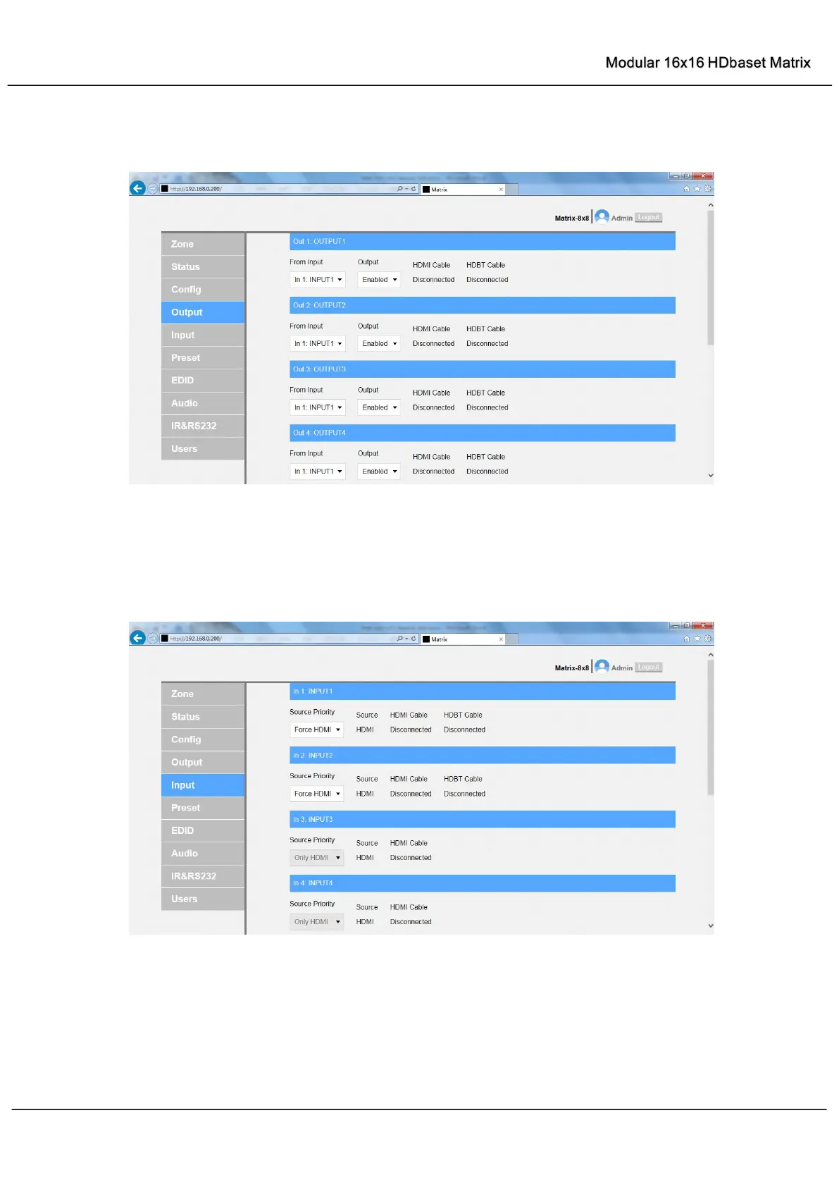 HDMI/HDBaseT. This page also shows the connect status for HDMI/HDBaseT ports.