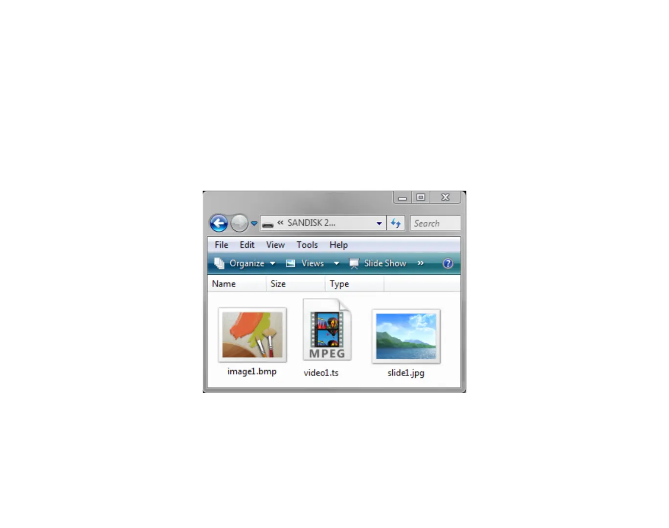 1 Copy your files into the root directory of an SD card. See the list of supported file types on